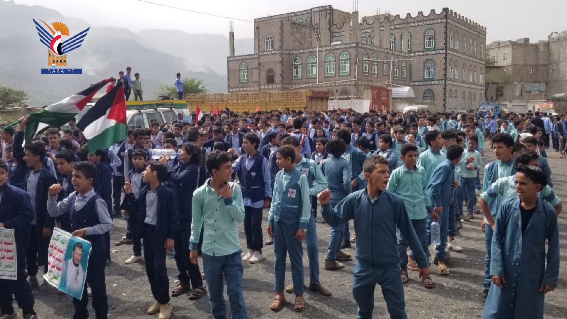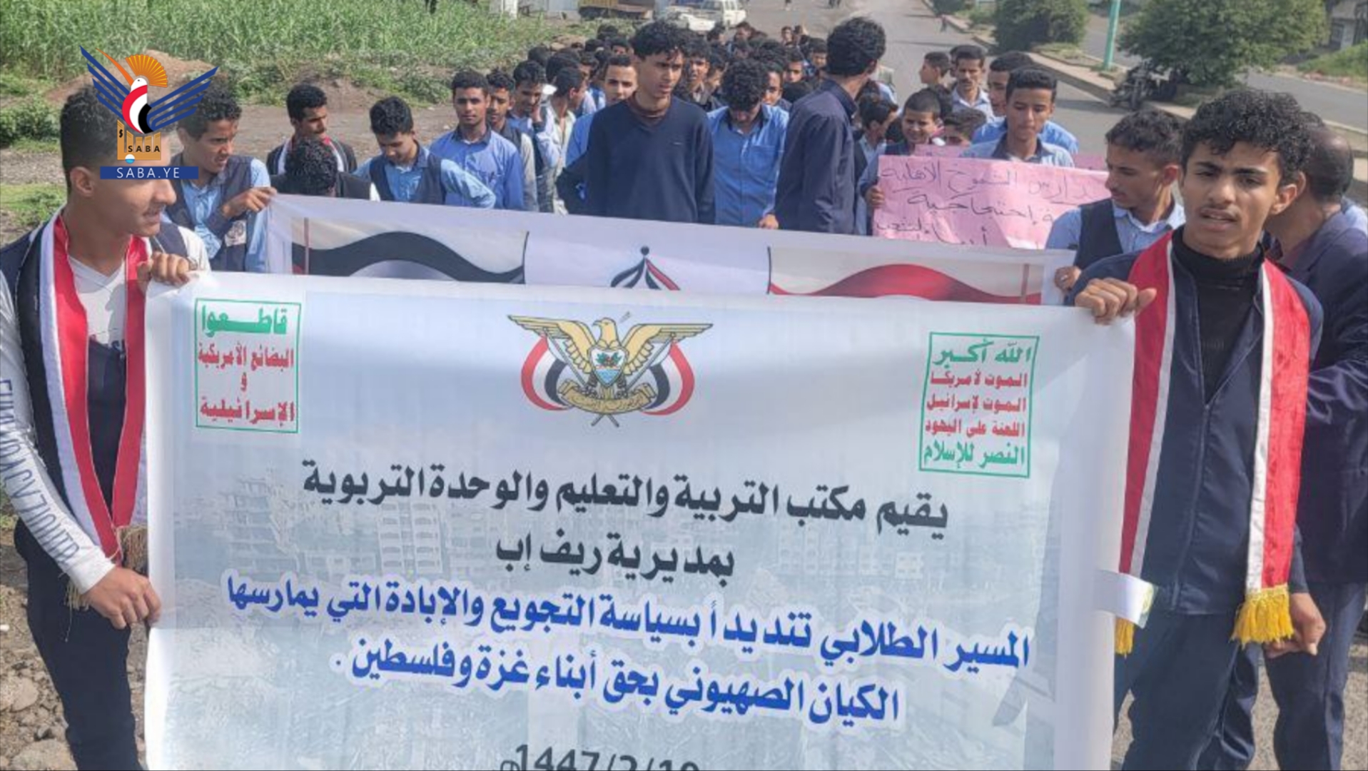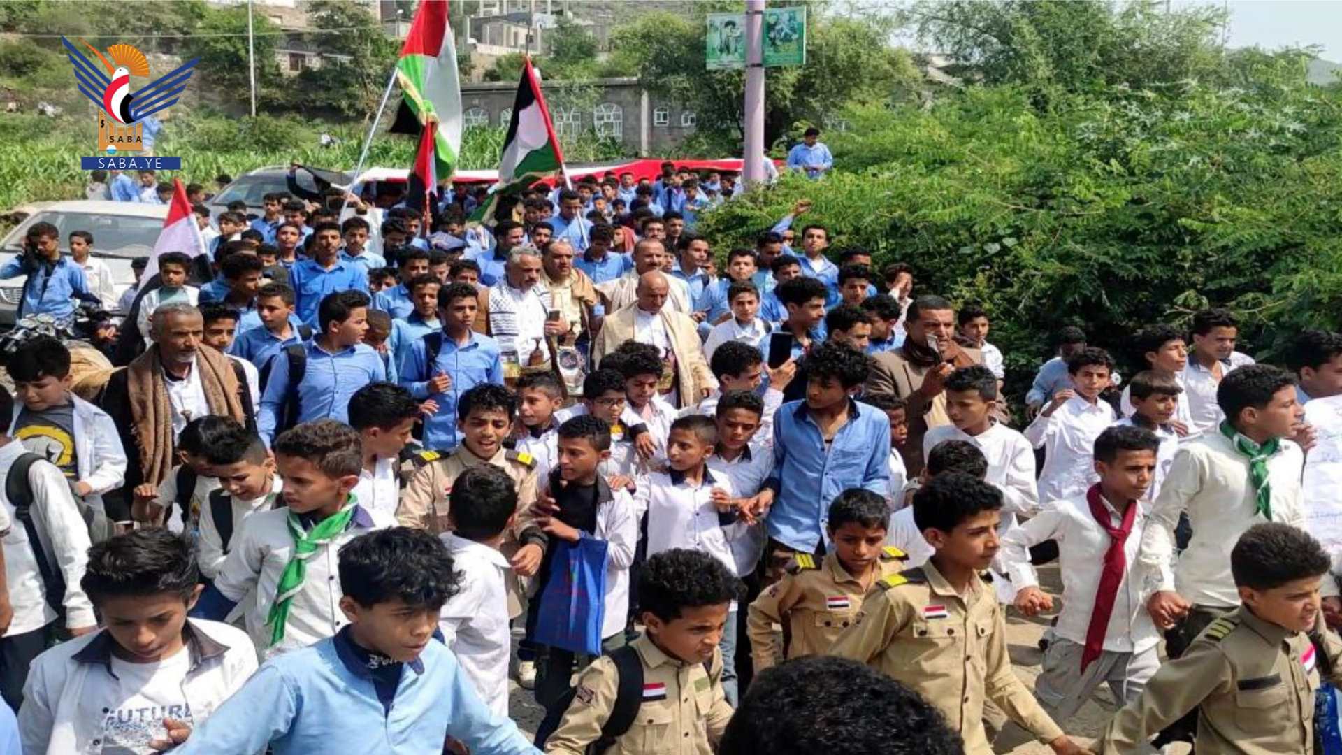 مسيرات طلابية في مديريات ريف إب وجبلة والمخادر نصرةً لغزة
