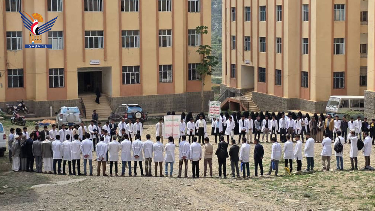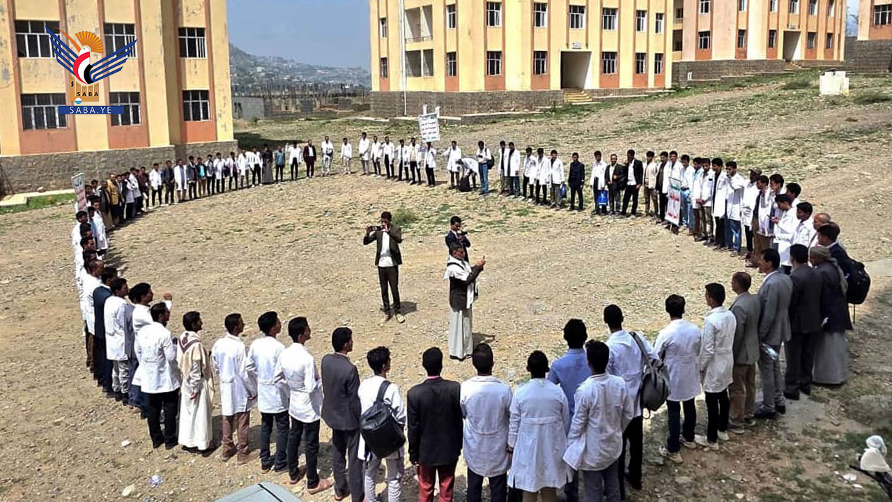 وقفة بكلية الطب بجامعة حجة تضامناً مع الشعب الفلسطيني