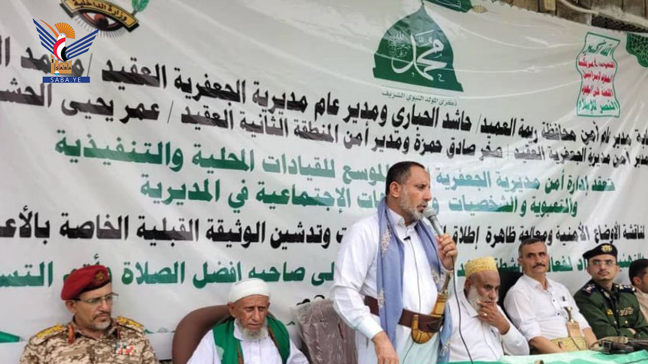 عقد بمديرية الجعفرية في محافظة ريمة اليوم لقاء موسع في إطار التحضير للفعاليات بذكرى المولد النبوي الشريف - على صاحبه وآله أفضل الصلاة وأتم التسليم ، والاستمرار في نصرة غزة .
