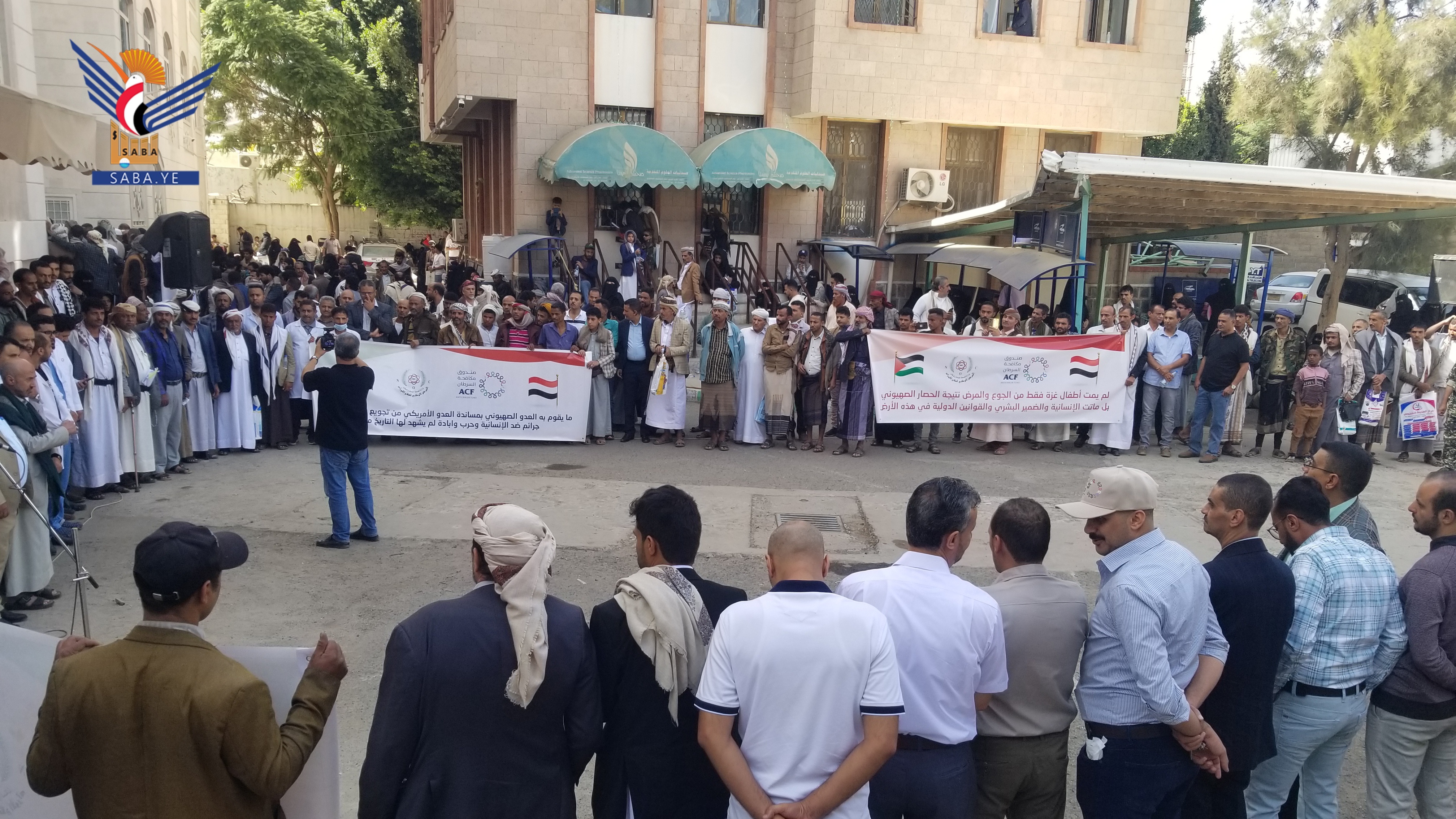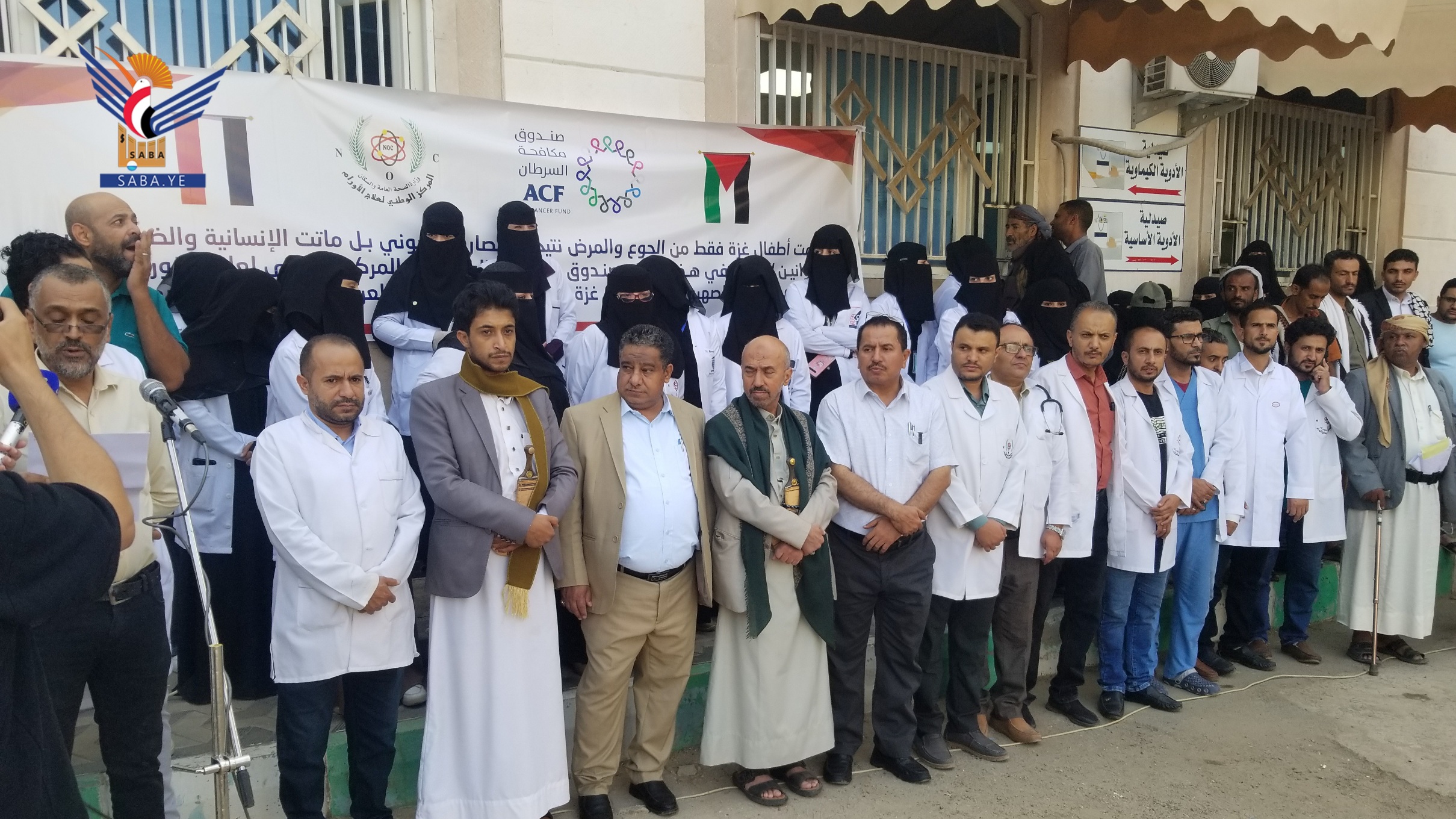 نظم صندوق مكافحة السرطان والمركز الوطني لعلاج الأورام، اليوم بصنعاء، وقفة تضامنية مع الشعب الفلسطيني في قطاع غزة.