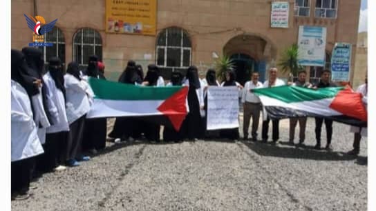 وقفات للقطاع الصحي بأمانة العاصمة نصرة لغزة وتنديداً بجرائم العدو الصهيوني