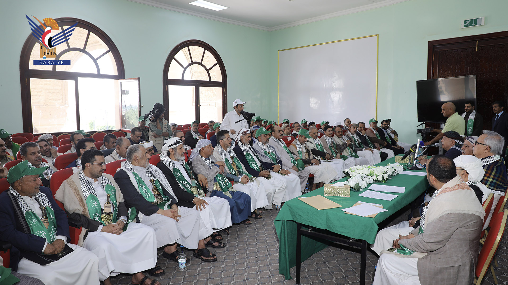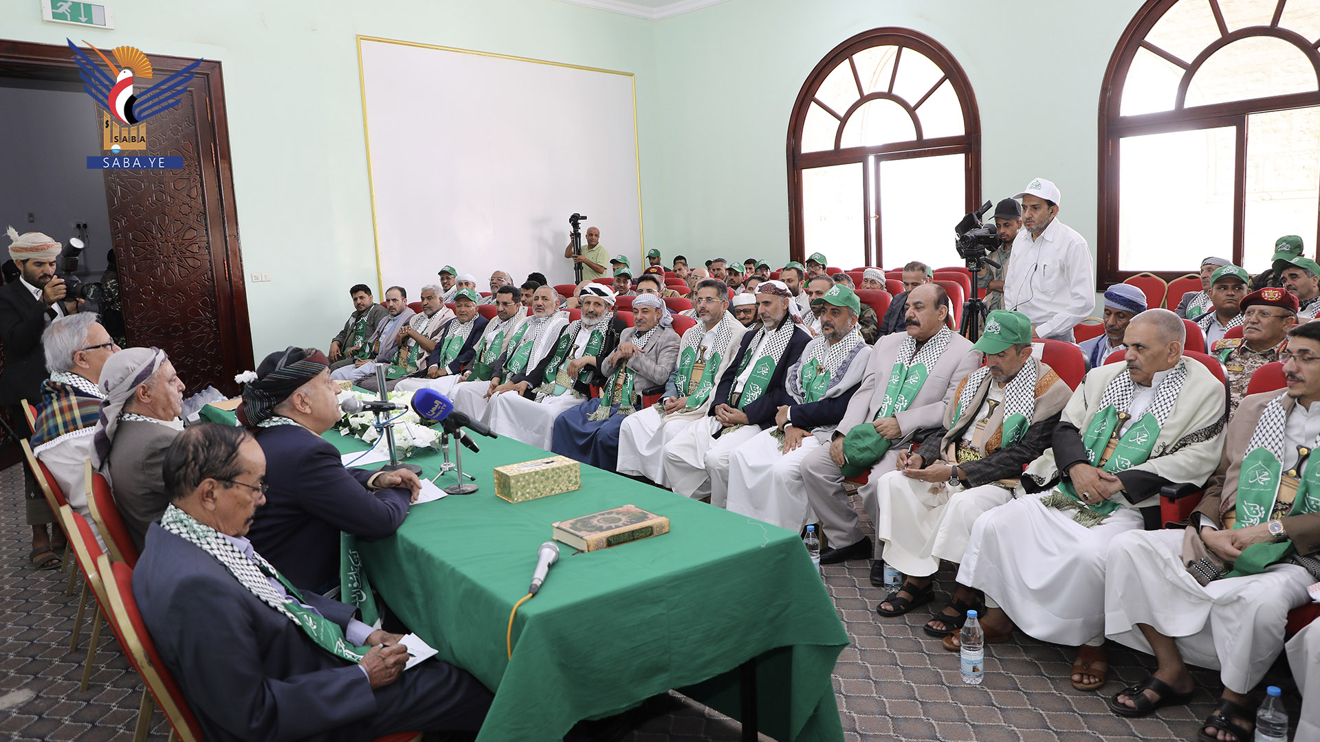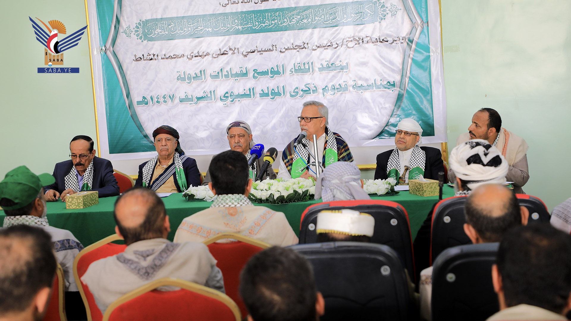 عُقد بصنعاء اليوم اللقاء الموسع لقيادات الدولة بقدوم ذكرى المولد النبوي الشريف 1447هـ، امتثالًا لقوله تعالى "لَٰكِنِ ٱلرَّسُولُ وَٱلَّذِينَ ءَامَنُواْ مَعَهُۥ جَٰهَدُواْ بِأَمْوَٰلِهِمْ وَأَنفُسِهِمْ ۚ وَأُوْلَٰٓئِكَ لَهُمُ ٱلْخَيْرَٰتُ ۖ وَأُوْلَٰٓئِكَ هُمُ ٱلْمُفْلِحُونَ".