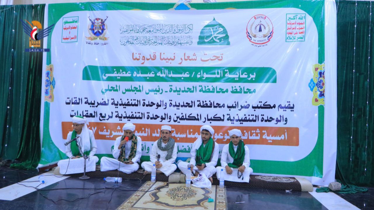 وأوضح محافظ الحديدة أن المولد النبوي يمثل فرصة لتعزيز الوحدة الداخلية، وتكامل الجهود بين مؤسسات الدولة والمجتمع، وتجسيد التلاحم في خدمة قضايا الأمة وعلى رأسها القضية الفلسطينية.