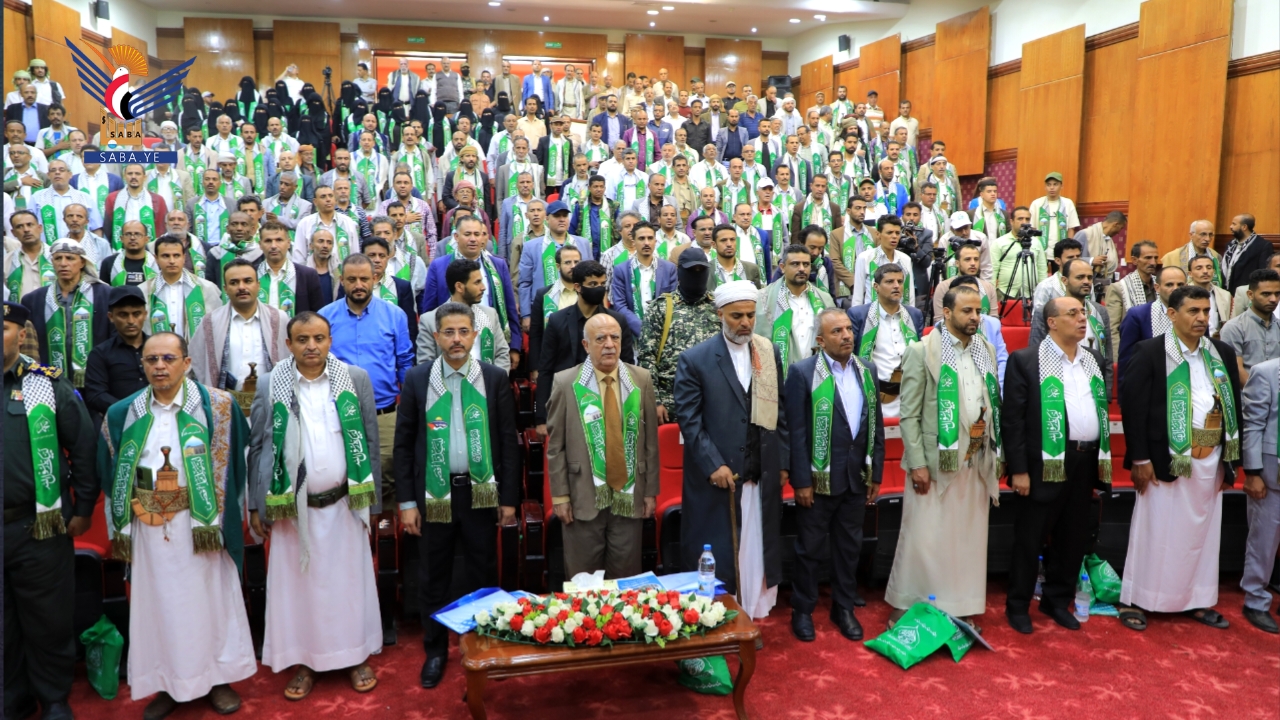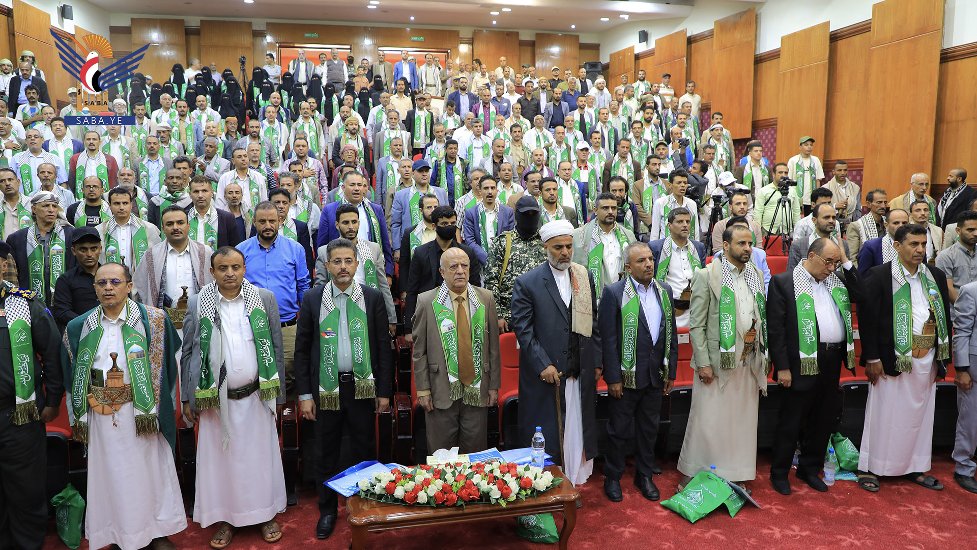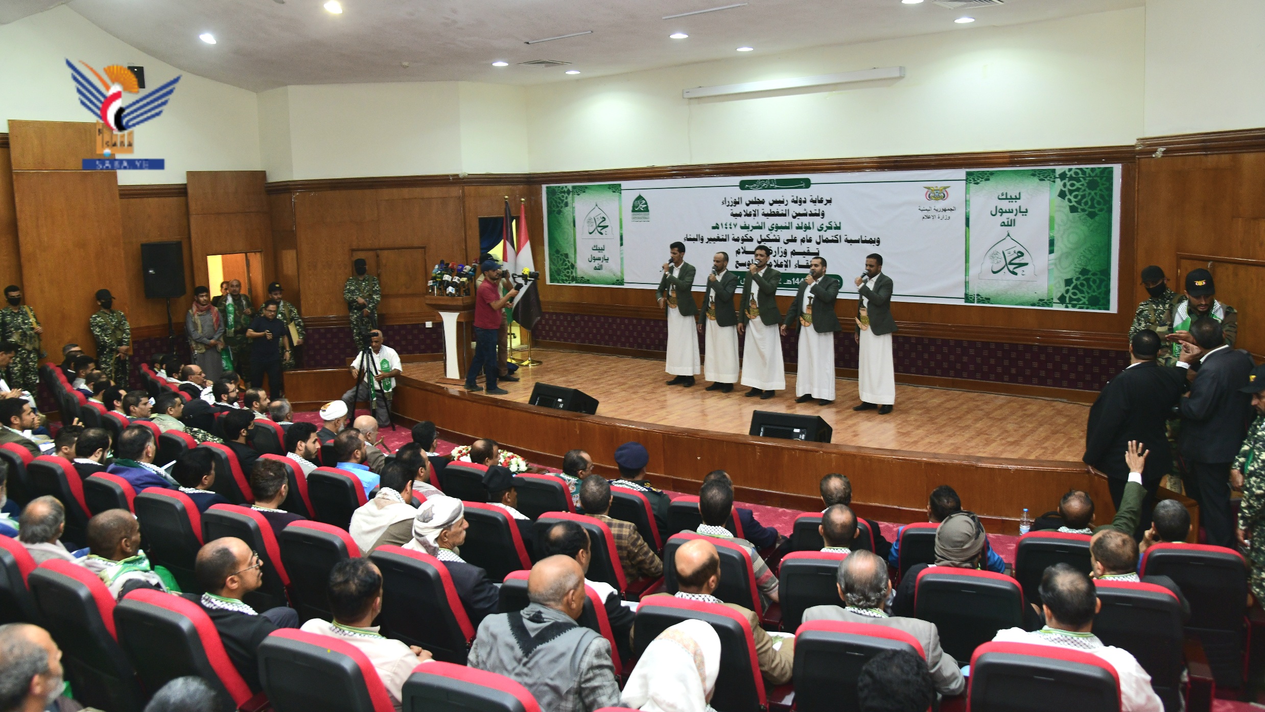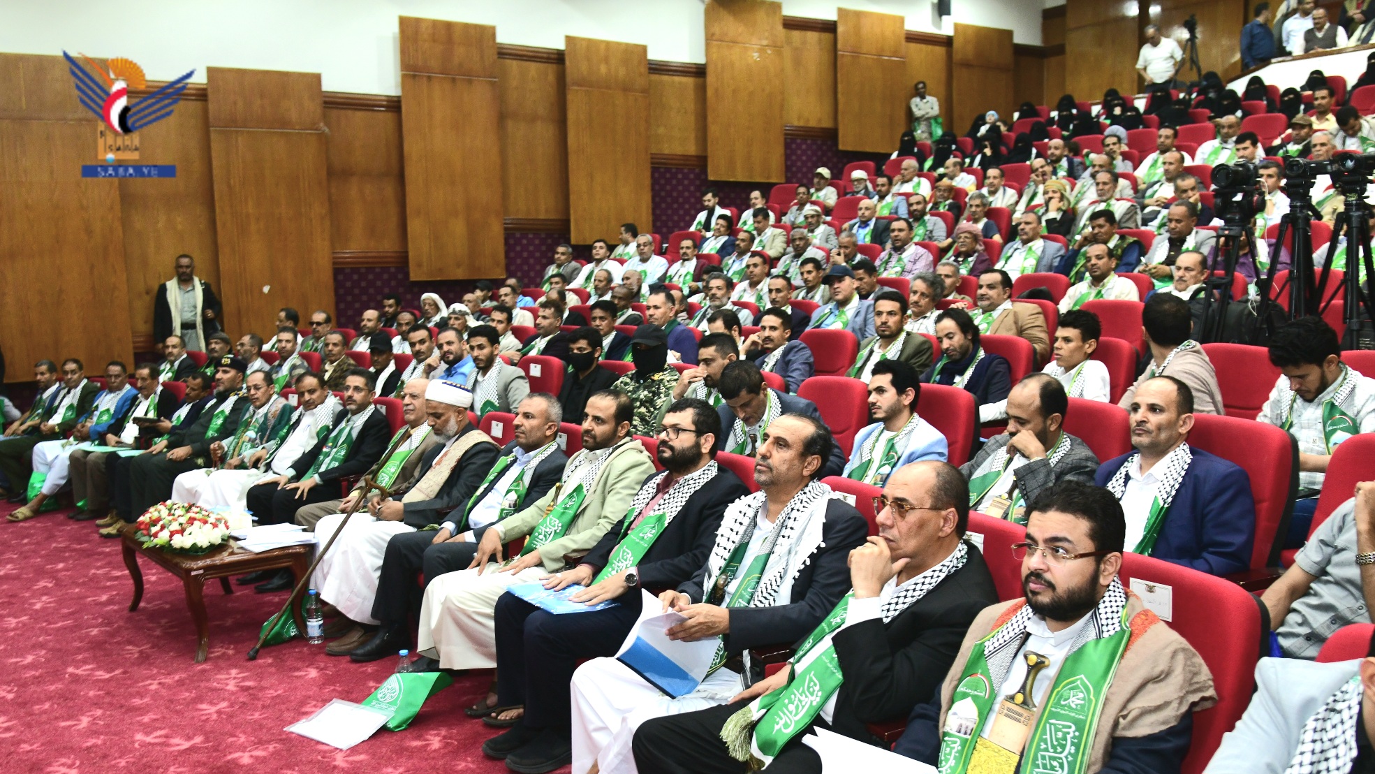 وأضاف "لا يسعنا في هذا المحفل، ونحن نتحدث عن نصرة الحق والعدل التي جاء بها الحبيب المصطفى، إلا أن نقف وقفة إجلال وإكبار للشعب اليمني وقائده الحكيم للموقف المشرف تجاه قضية الأمة المركزية "فلسطين"، ونصرة الصامدين في غزة.