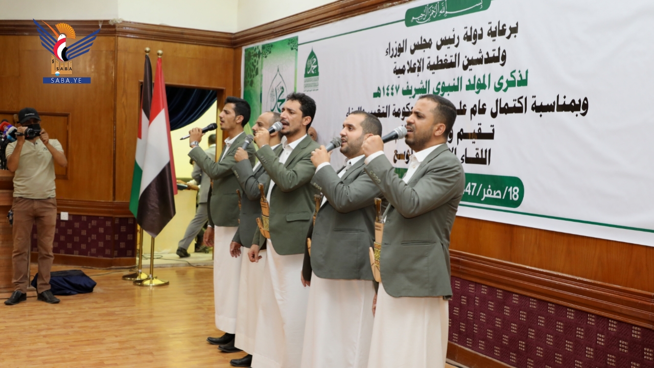 ولفت إلى أن تدشين التغطية الإعلامية لفعاليات وأنشطة ذكرى المولد النبوي، يتزامن مع اكتمال العام الأول من عمل حكومة التغيير والبناء، معتبرًا ذلك فرصة لتجديد العهد لموجهات قائد الثورة السيد عبدالملك بدر الدين الحوثي التي شكلت خارطة طريق للحكومة.