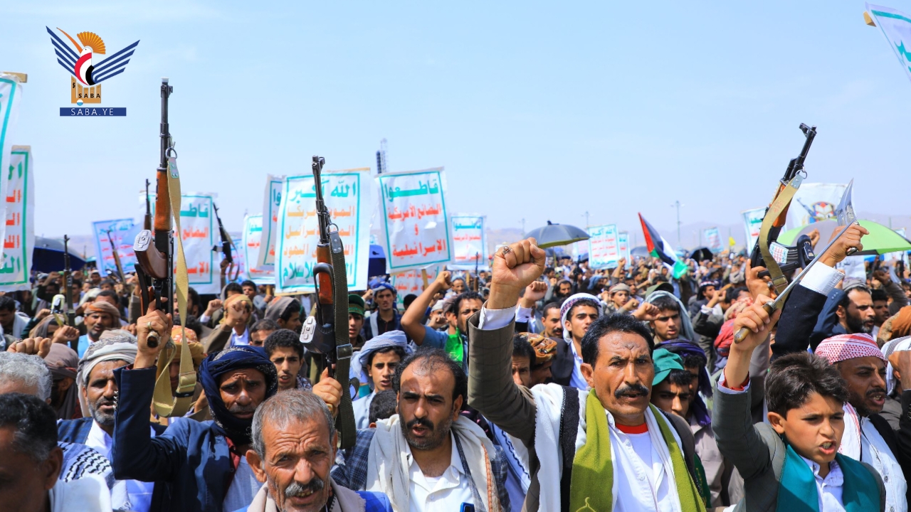 وفي المسيرات التي خرجت بساحتي المولد النبوي بمركز المحافظة، والشهيد القائد في خولان عامر، وساحات ذويب في حيدان، وشعارة والحجلة وبني صياح وبني القم والشوارق في رازح، والخميس وآل مقنع ونيد البارق بمنبه، والسهلين والبرقة والعقلين في آل سالم، وكتاف وأملح والعقيق في كتاف، والجرشة والرحمانين وبقامة بغمر، وبني سعد والرقة والقهرة ووالبة والعين بالظاهر، والجمعة وعرو في بني بحر، وشدا، ويسنم وقهر بني الحارث في باقم، وقطابر وآل ثابت وحنبه بقطابر، وربوع الحدود وبني عباد وولد عمر وبني سويد ومدينة جاوي في مجز، ومذاب في الصفراء، والجفرة والعضلة في الحشوة، أكد المشاركون ثبات الموقف اليمني المساند للشعب الفلسطيني مهما كانت المؤامرات والتهديدات.
