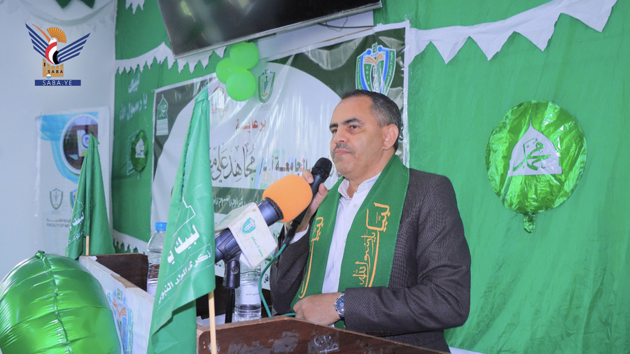فيما أكد رئيس الجامعة الدكتور مجاهد معصار، أن الاحتفال بالمولد النبوي فرصة لتجديد الحب والولاء والارتباط بالنبي الكريم واستذكار سيرته العطرة واتخاذها سلوكًا ومنهاج حياة.
