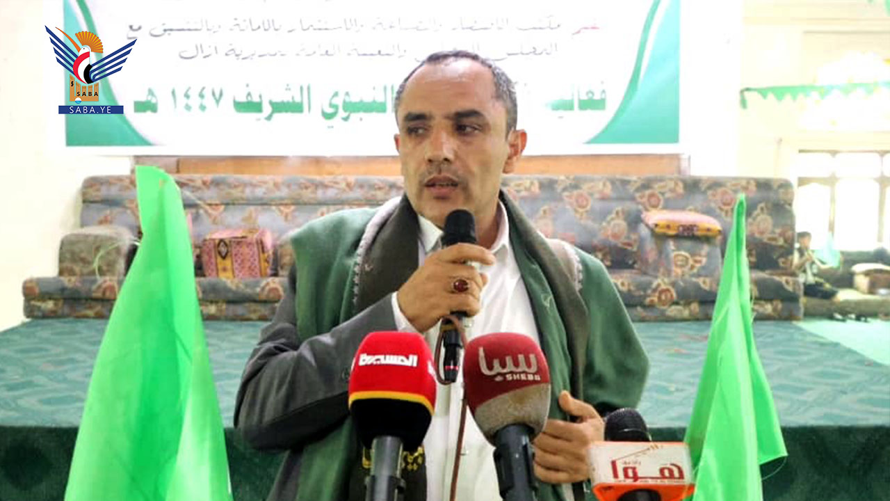 نظم مكتب الاقتصاد والصناعة والاستثمار في أمانة العاصمة بالتعاون مع المجلس المحلي والتعبئة العامة بمديرية آزال اليوم، فعالية احتفالية بذكرى المولد النبوي الشريف 1447هـ على صاحبها وآله أفضل الصلاة وأتم التسليم.