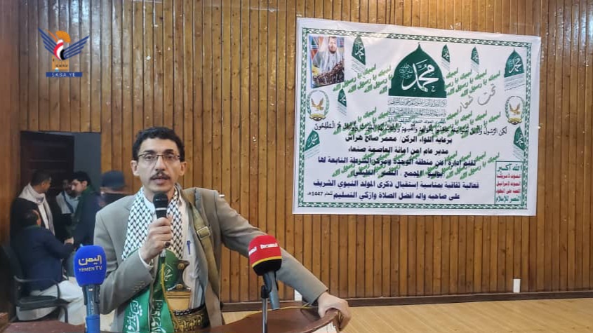 وأكد أن الرسالة النبوية تكمن في أهمية الاقتداء بها والسير على منهج الرسول الكريم -عليه الصلاة والسلام، داعياً الجميع إلى التفاعل الجاد، والتحشيد والمشاركة في الفعالية المركزية التي ستقام في الثاني عشر من ربيع الأول الجاري في العاصمة صنعاء.