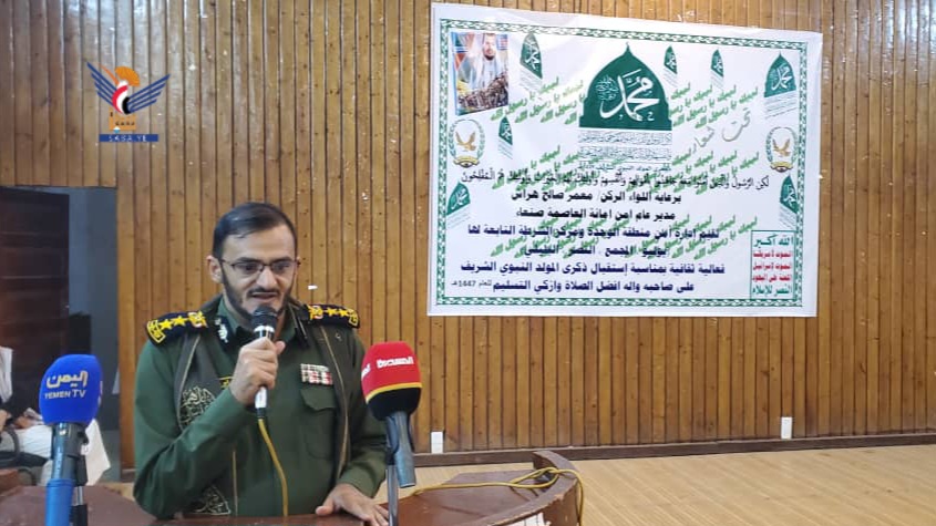 فيما لفت مدير إدارة أمن منطقة الوحدة، العقيد بشير المغربي، إلى محاولة الأعداء إبعاد المسلمين عن المصطفى -صلى الله عليه وآله وسلم- وسيرته العطرة، والابتعاد عن أخلاقه وصفاته التي يجب على كل مسلم ومسلمة الاقتداء والتحلي بها قولاً وعملاً.