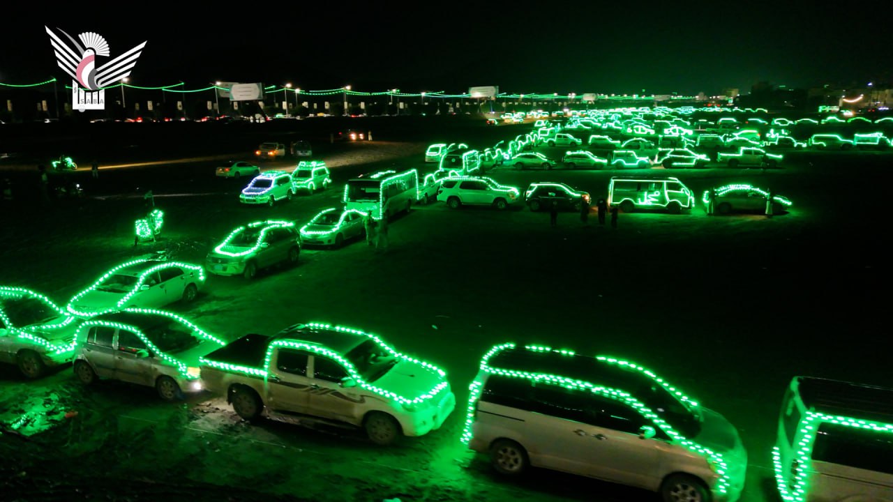 مسيرة ضوئية للسيارات بالعاصمة صنعاء احتفاءً بقدوم ذكرى مولد النور