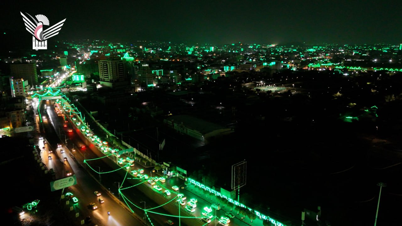 شهدت العاصمة صنعاء مساء اليوم، مسيرة ضوئية للسيارات المزينة بالأضواء الخضراء تعبيرا عن الابتهاج والاحتفال بقدوم ذكرى مولد النور والسراج المنير محمد صلى الله عليه وآله وسلم.