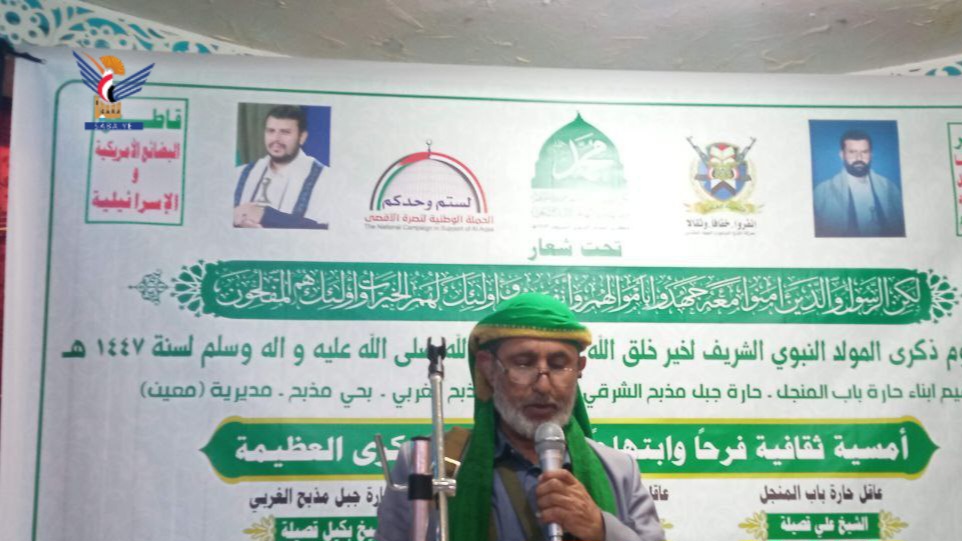 وتطرقت الأمسيات التي شارك فيها عضو رابطة علماء اليمن العلامة صالح الخولاني ومدير مكتب المالية بالأمانة الدكتور محمد الجنيد ومعاون مسؤول التعبئة بالمديرية محبوب الأهدال، إلى أهمية الاحتفال بالمولد النبوي الشريف، حباً وتعظيماً وتوقيراً لرسول الله - صلى الله عليه وآله وسلم.