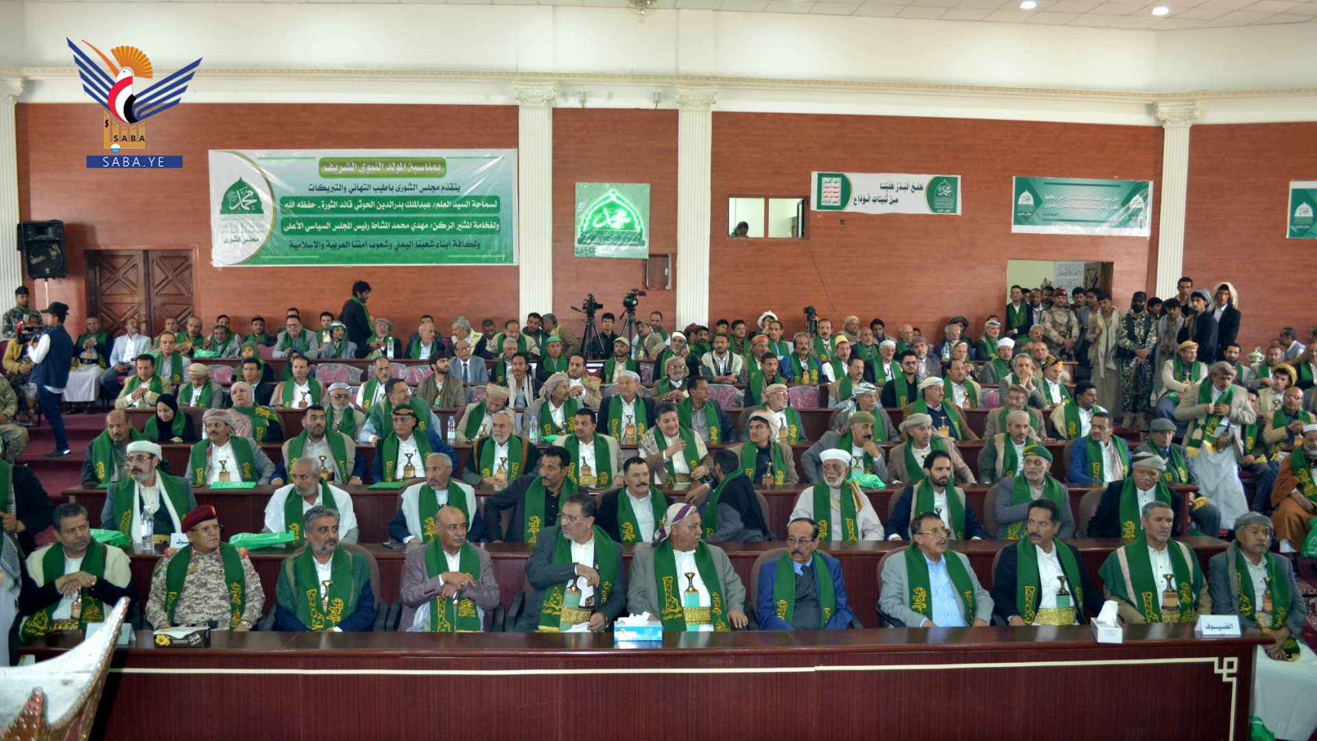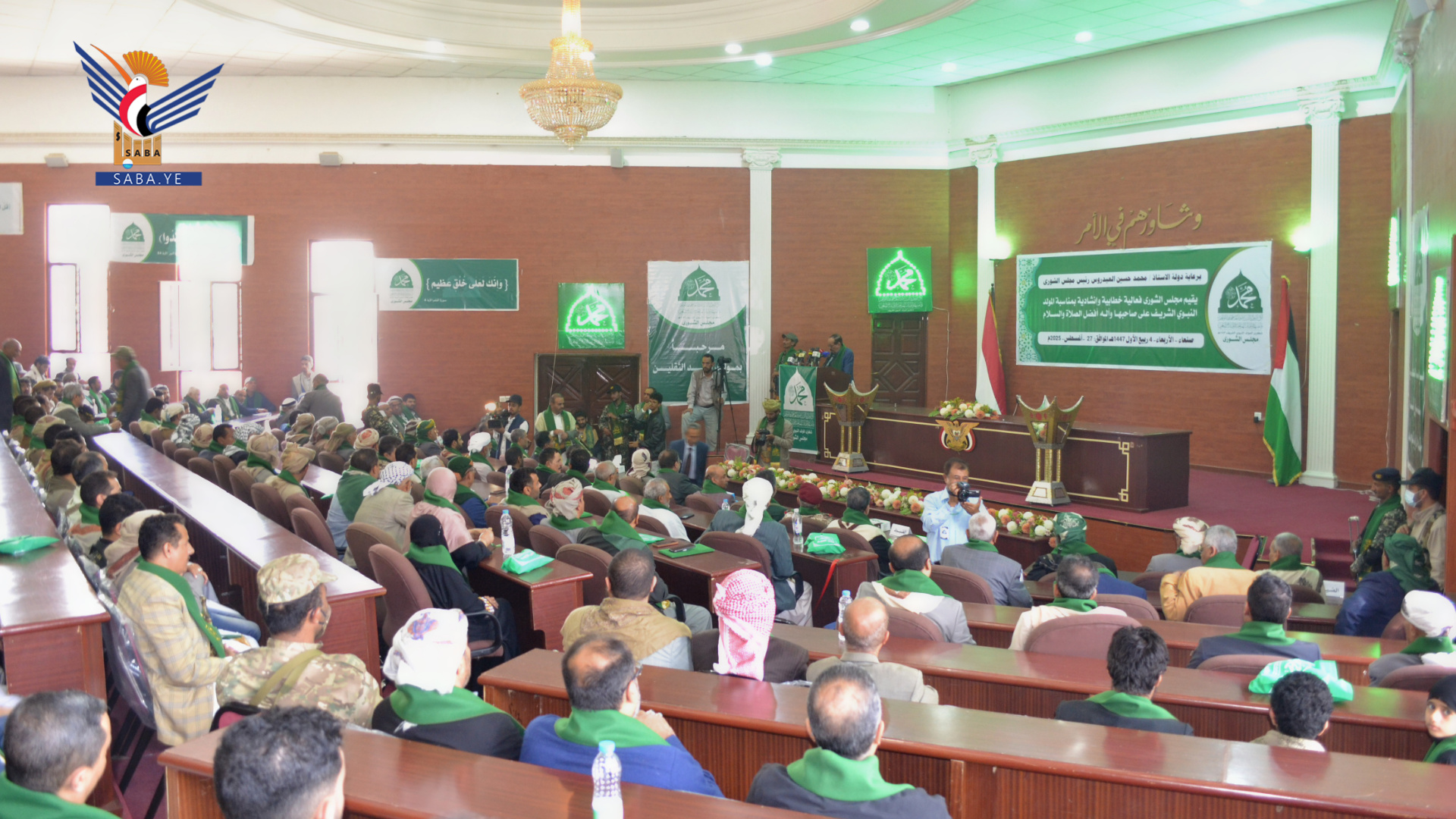 وفي الفعالية التي حضرها رئيس مجلس النواب الأخ يحيى علي الراعي، أكد رئيس مجلس الشورى محمد حسين العيدروس، ان الاحتفاء بمولد من أرسله الله رحمة للعالمين هو تجديد للانتماء إلى هويته المحمدية والتزام بقيم الجهاد والصمود والتضحية التي يجسدها الشعب اليمني الصابر في مواجهة العدوان والحصار.