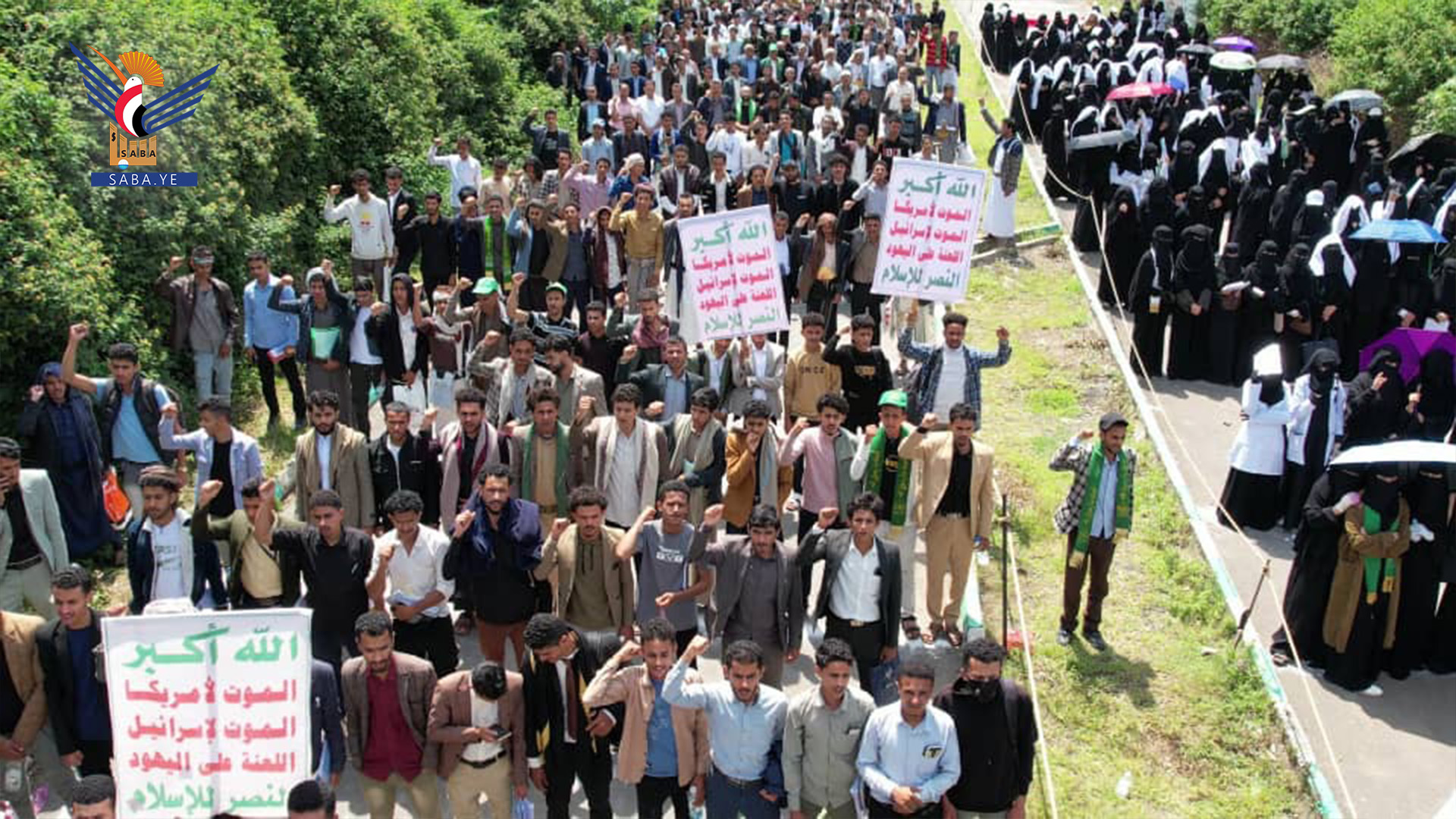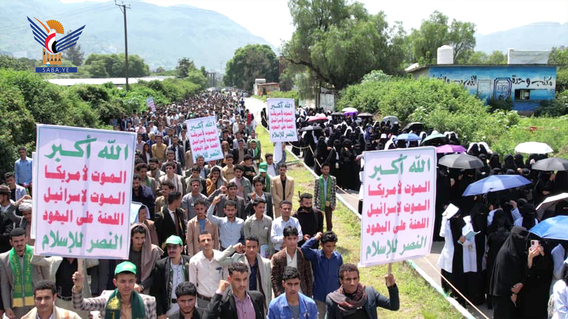 نظمت جامعة إب اليوم بالتنسيق مع ملتقى الطالب الجامعية، مسيرة حاشدة مساندة للشعب الفلسطيني وتنديداً بجرائم التجويع والإبادة الجماعية التي يرتكبها العدو الصهيوني الأمريكي بحق أبناء غزة.