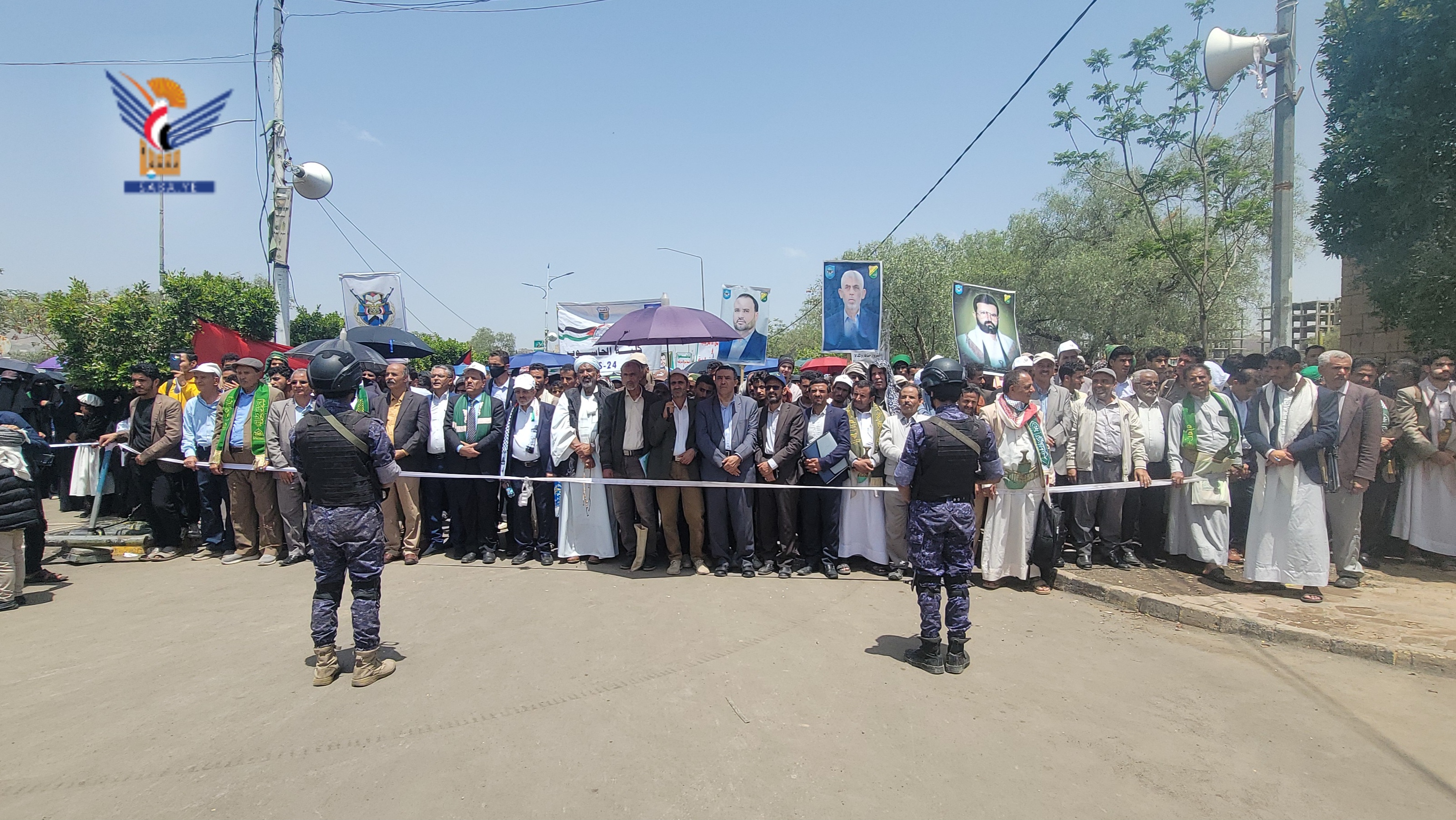 ورفع المشاركون في المسيرة التي شارك فيها رئيس الجامعة الدكتور محمد البخيتي، ونوب رئيس الجامعة، وعمداء الكليات، ومنتسبو الجامعة من أكاديميين وإداريين وطلبة، العلمين اليمني والفلسطيني، مرددين الهتافات المنددة باستمرار جرائم الإبادة والتجويع التي يرتكبها العدو الصهيوني بحق سكان غزة، بدعم أمريكي وغربي وتخاذل وصمت عربي وإسلامي.