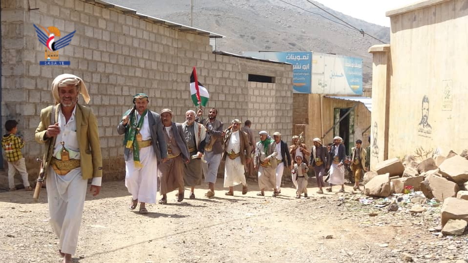 وخلال المسير الذي تقدّمه مدير المديرية هلال معيض ، ردد المشاركون هتافات العزة والكرامة والتضامن مع غزة، والتحدي للعدو الصهيوني، وكل من يدور في فلكه بالداخل والخارج، ويحاول شق الصف الداخلي.