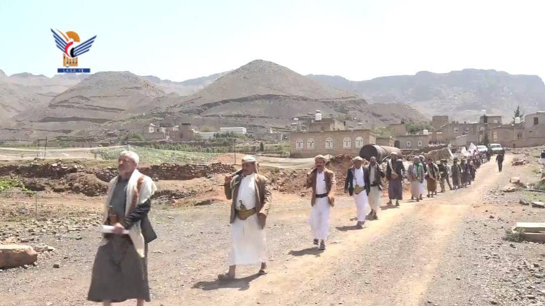 نظم عدد من منتسبي قوات التعبئة العامة في قرية المربك ، عزلة جبل اللوز بمديرية الطيال ، في محافظة صنعاء، اليوم، مسيرًا راجلًا ، تأكيدًا للجهوزية والاستعداد لمواجهة أي طارئ.