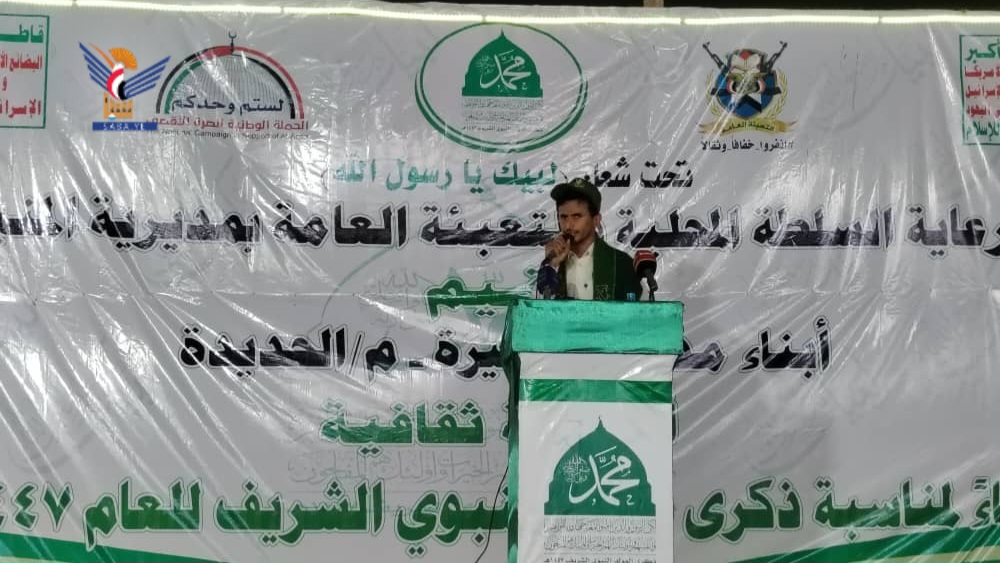 من جانبه تطرق مدير المديرية بكر مهدلي، إلى مكانة الرسول الكريم في قلوب أبناء اليمن، وارتباطهم الوثيق به - صلوات الله عليه وآله وسلم، وحرصهم على إقامة فعاليات الاحتفالات بالمولد النبوي وكافة المناسبات الدينية المرتبطة بالهوية الإيمانية.
