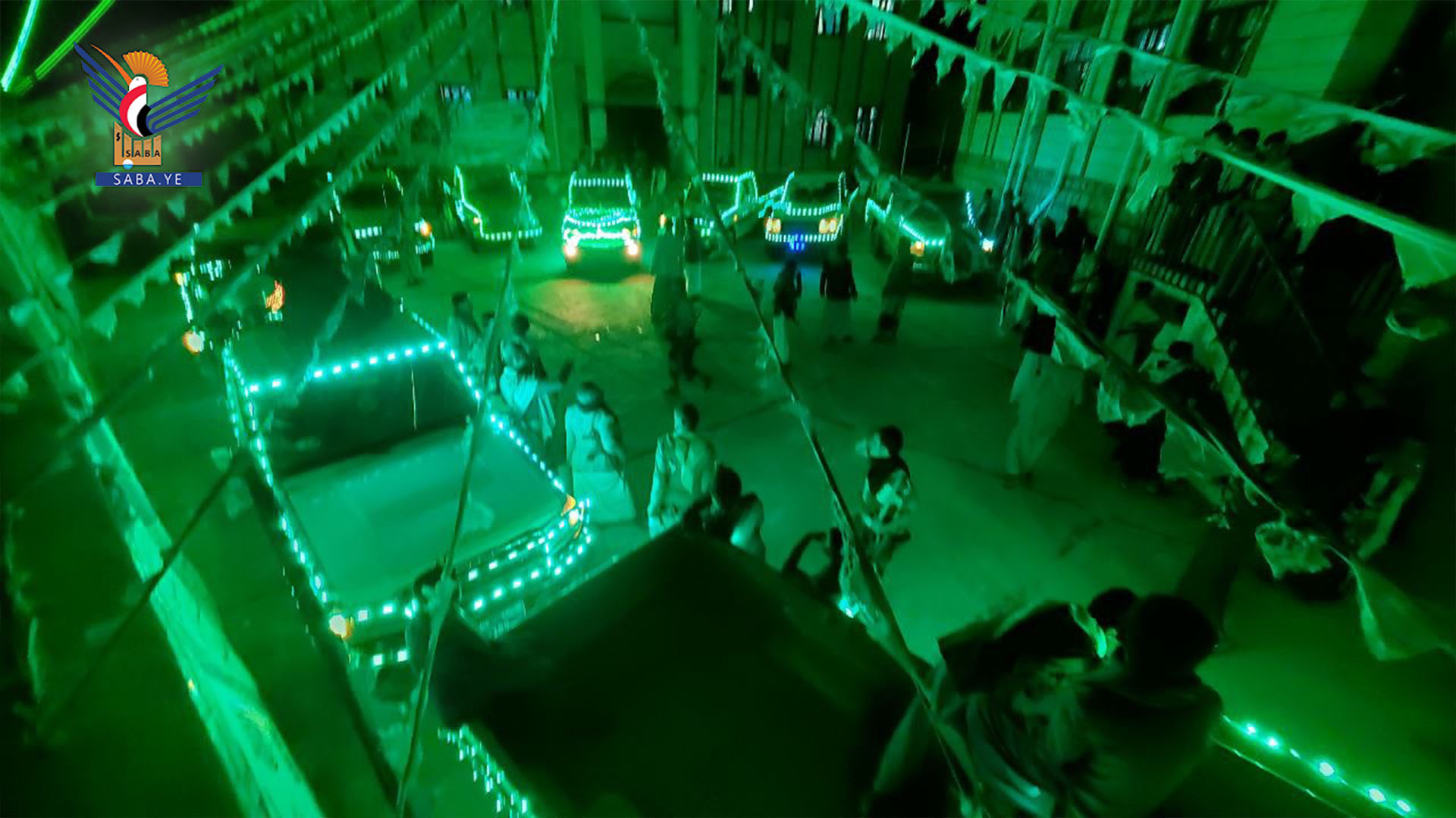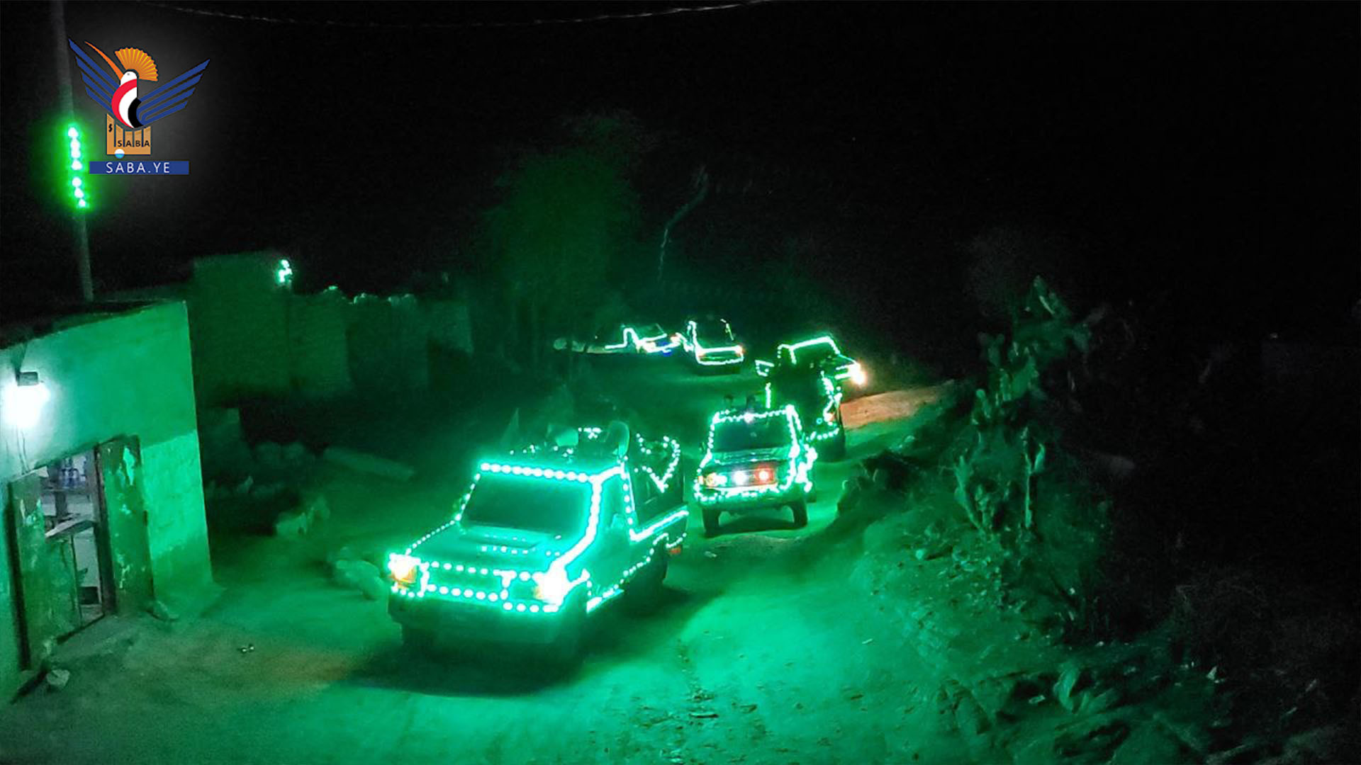 ورسمت المسيرة الضوئية المتشحة بالأضواء الخضراء بمشاركة عشرات السيارات التي انطلقت من منطقة براير عزلة بني داوود، إلى مركز المديرية لوحة محمدية جسّدت قوة ارتباط أهل الحكمة والإيمان بالرسول الأعظم صلى الله عليه وآله وسلم.