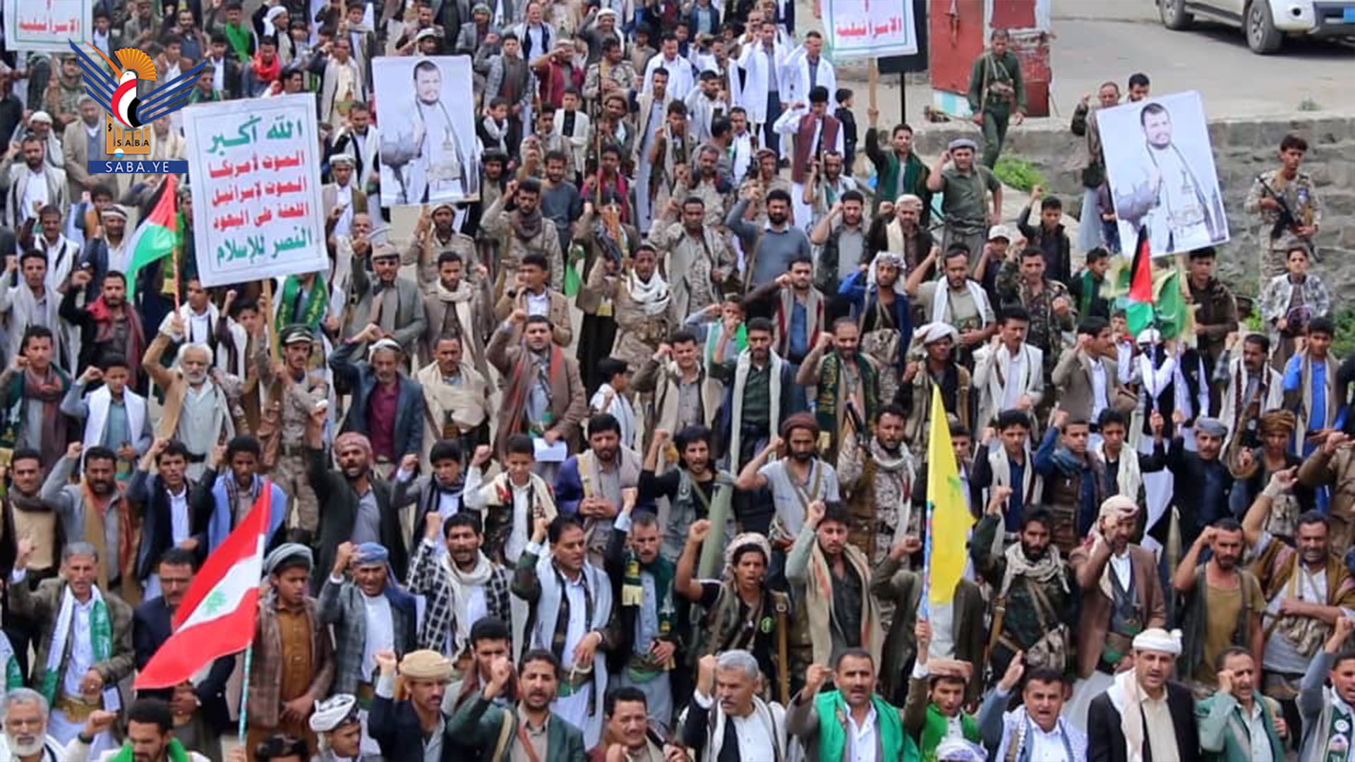 وأكد بيان صادر عن المسيرات ثبات موقف الشعب اليمني في مساندة غزة مهما كانت التحديات والتضحيات، والاستمرار في التصعيد حتى يكتب الله النصر لغزة وفلسطين.