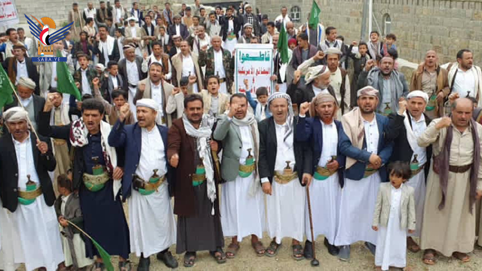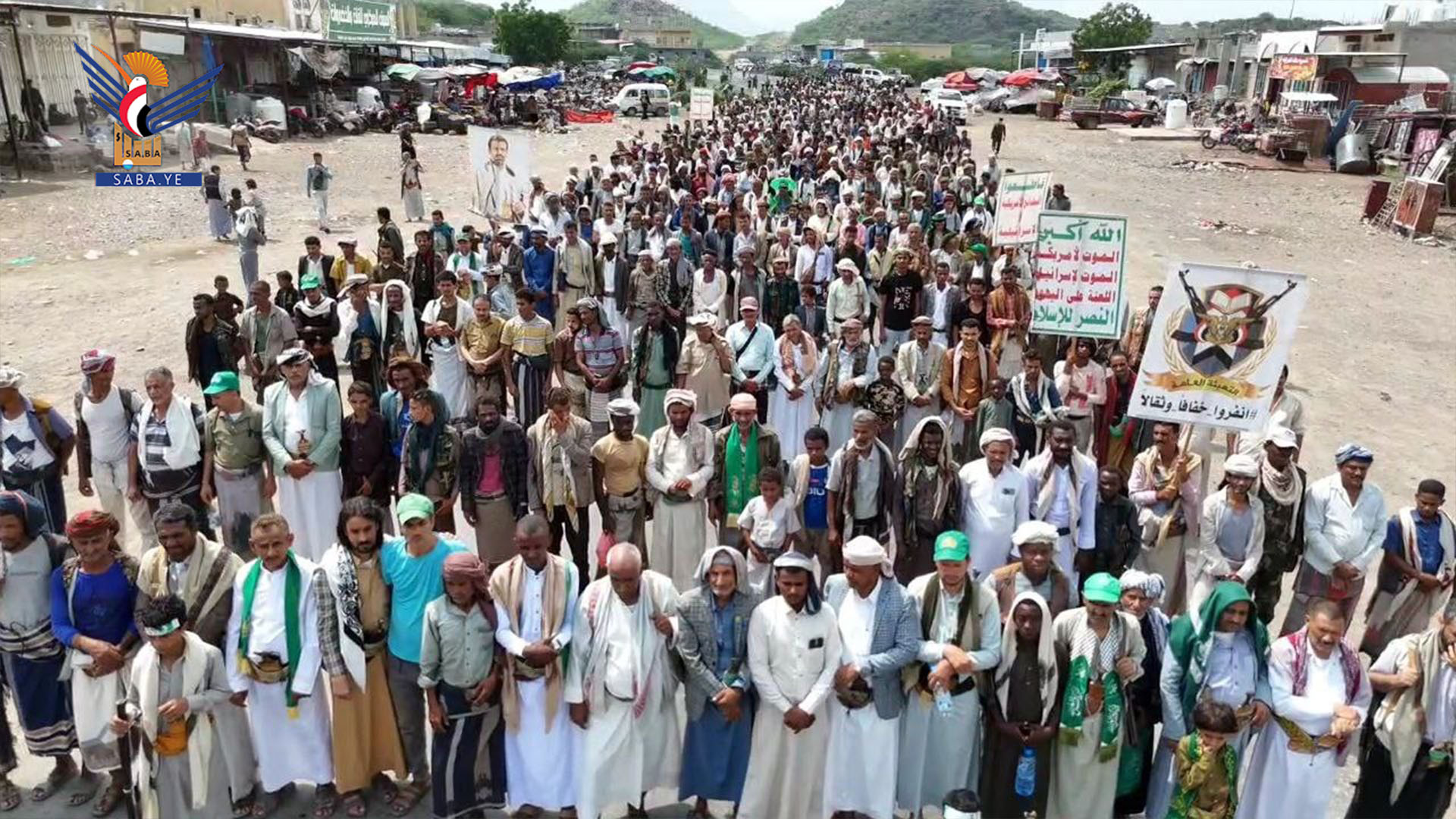 أبناء ريمة يحتشدون في 82 مسيرة تأكيداً على ثبات الموقف مع غزة