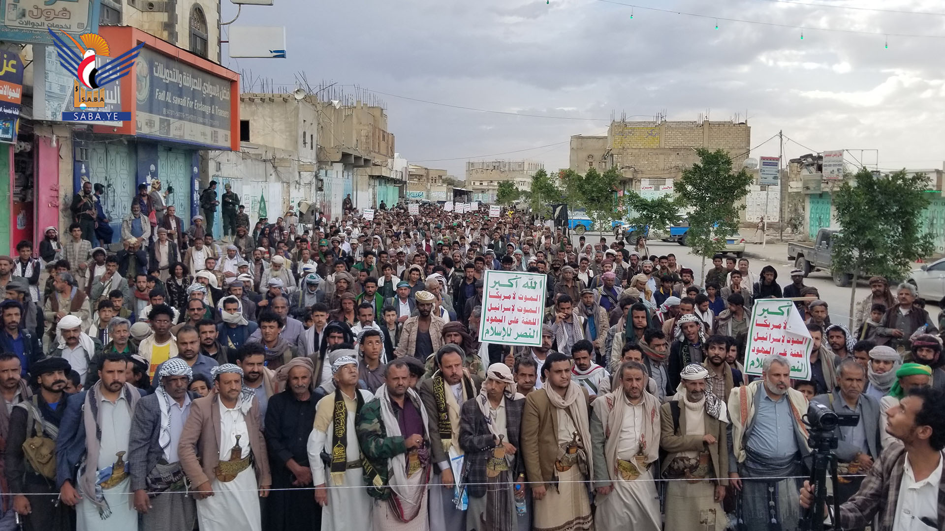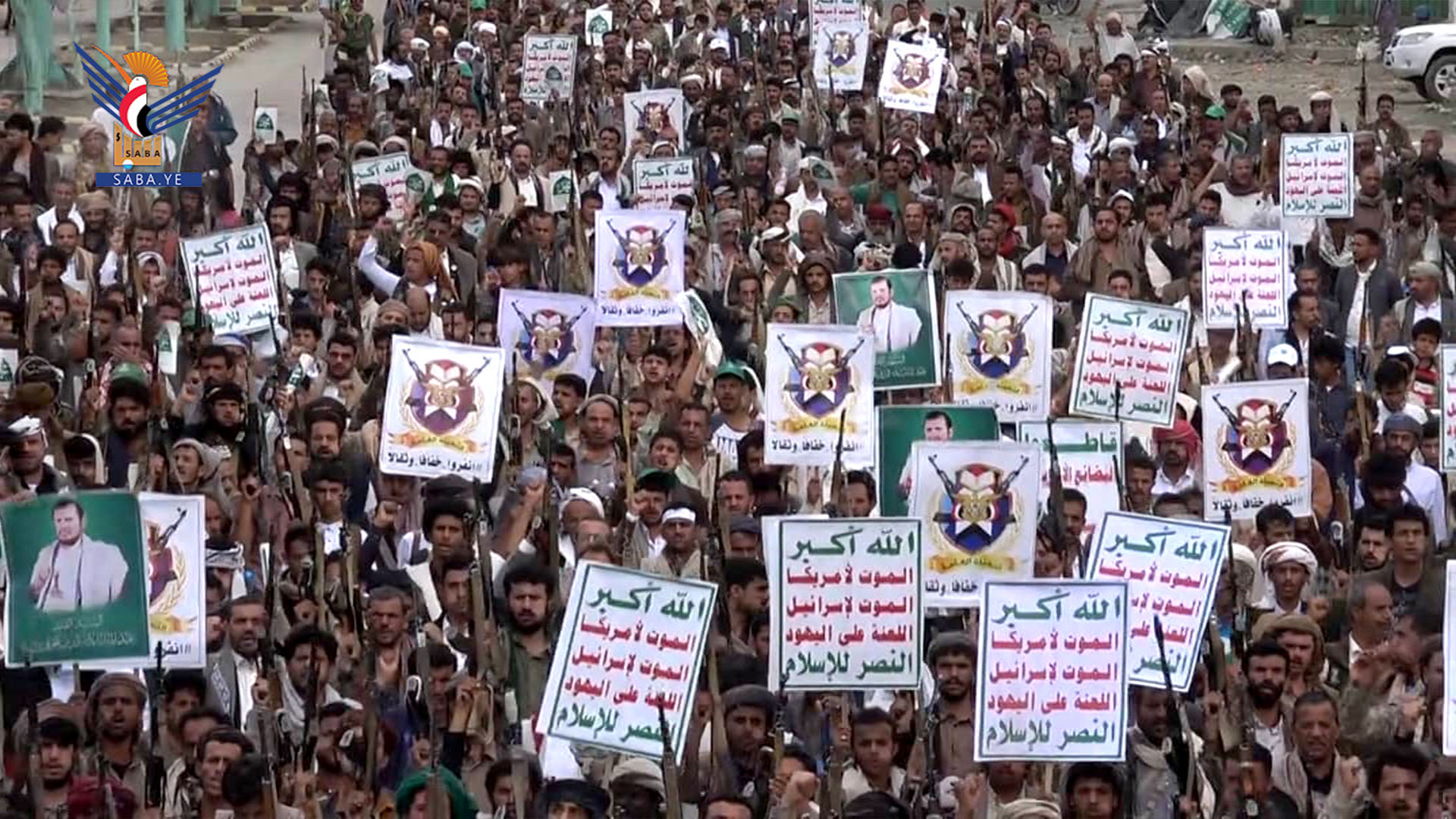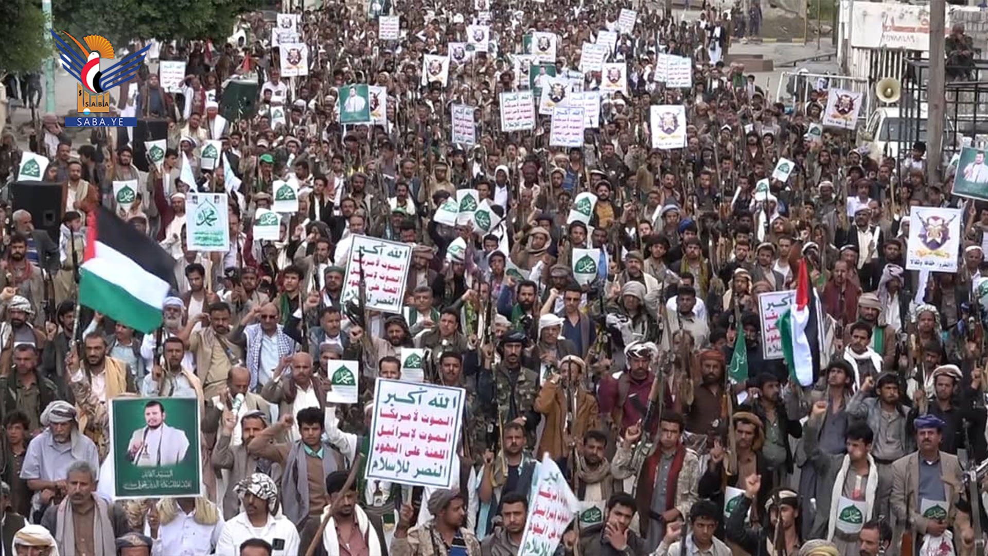 وأكدت الحشود أن أي عدوان على اليمن لا يمكن أن يثني الشعب اليمني عن موقفه الديني والأخلاقي والإنساني المساند للأشقاء في غزة والدفاع عن قضايا ومقدسات الأمة.