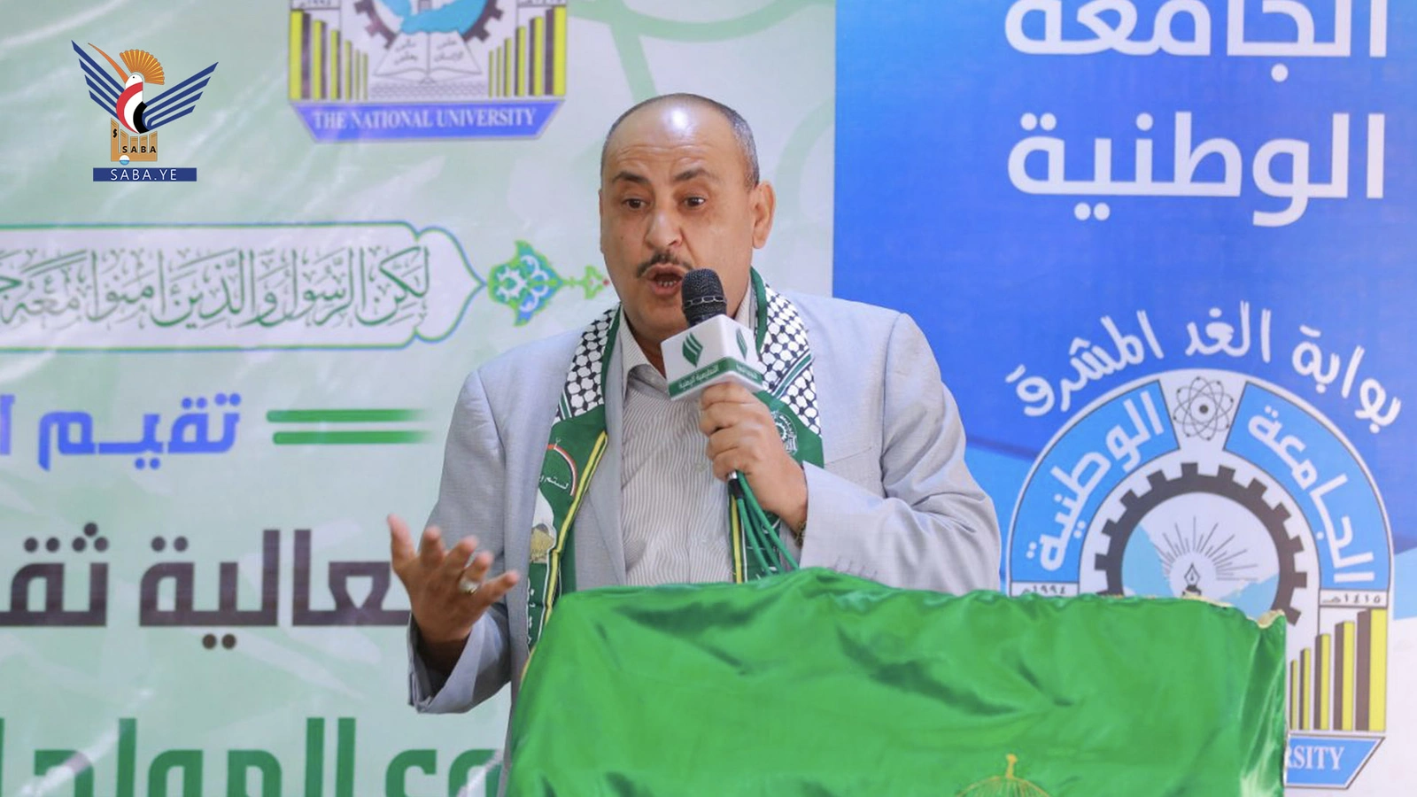 بدوره أوضح رئيس الجامعة الوطنية الدكتور فتحي شروان، أن الله تعالى شرّف الوجود بميلاد خير البرية وشكل مولده إعلانًا لمبادئ الحق والعدل والأخلاق الحميدة والفاضلة.