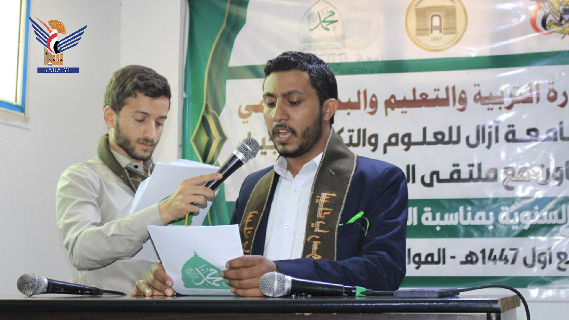 أقيمت بصنعاء اليوم فعالية خطابية بذكرى المولد النبوي، نظمتها جامعة آزال للعلوم والتكنولوجيا وملتقى الطالب الجامعي.