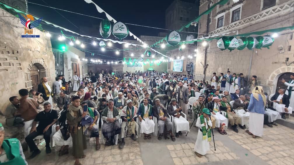 نظم أبناء حارة الوشلي بمديرية صنعاء القديمة في أمانة العاصمة،اليوم، فعالية ثقافية بذكرى المولد النبوي الشريف.