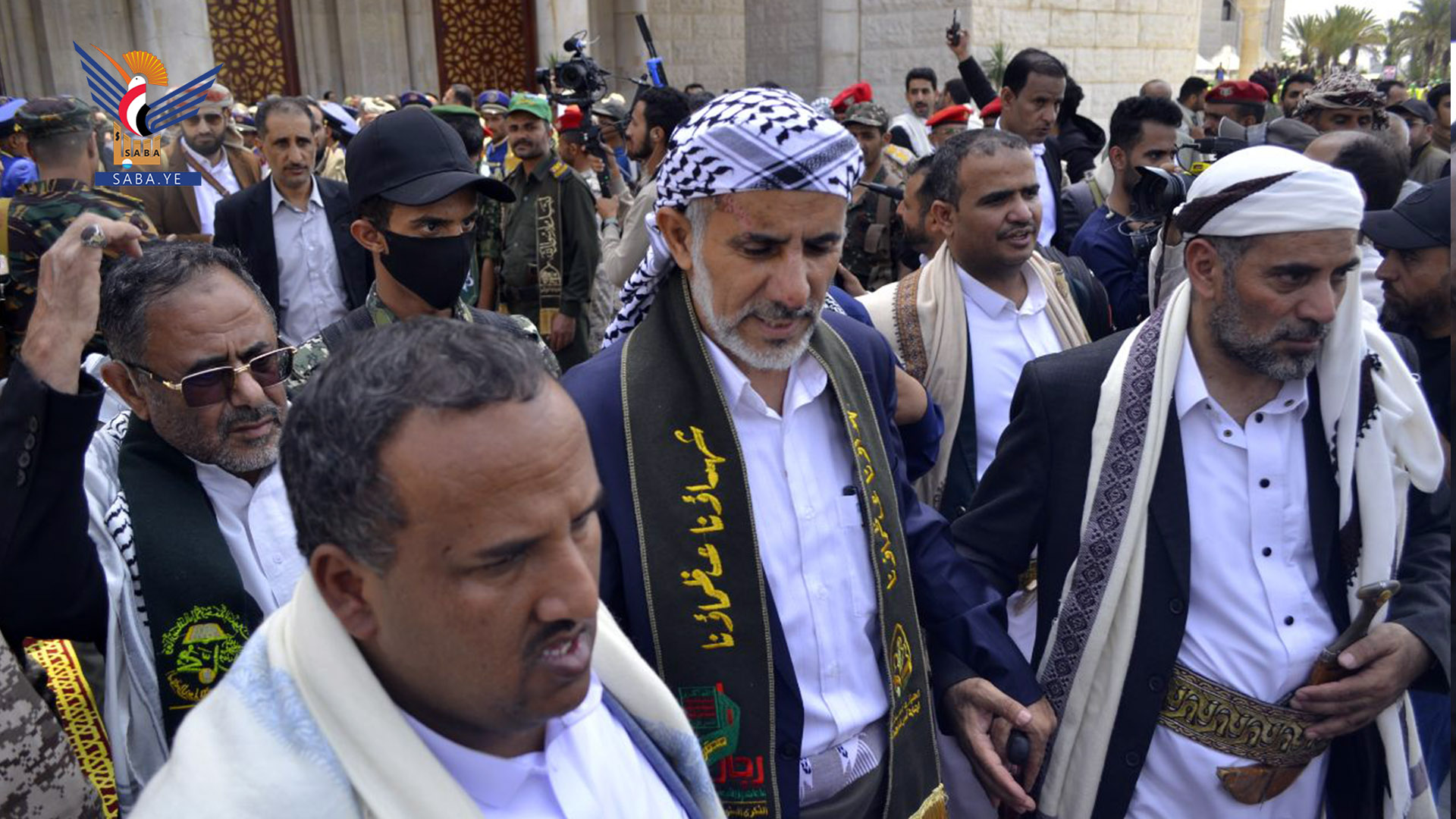 وقال: "هذا الحضور الشعبي يلحق الهزيمة بالعدو، الحضور في كل الساحات والميادين مشرف"، مؤكدًا أن العالم ينتظر حضور الشعب اليمني العظيم في يوم الملحمة الإيمانية يوم الوفاء لخاتم الأنبياء في ذكرى مولده عندما تجتمع حشود غير مسبوقة في تاريخ الجزيرة العربية، وفي تاريخ المنطقة والعالم، في مختلف مناطق اليمن تجتمع الحشود بتنظيم وترتيب وثبات ومعنويات عالية، في ملحمة حقيقية لا يصنعها إلا شعب وصفه النبي صلى الله عليه وآله وسلم بأنه شعب الإيمان والحكمة.