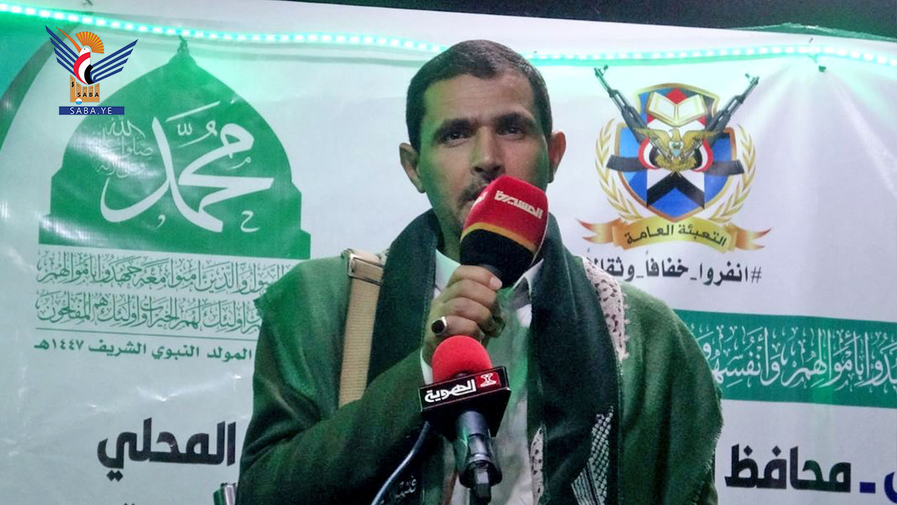 وتطرق إلى مكانة الرسول صلى الله عليه وآله وسلم في أعماق ووجدان الشعب اليمني وصدق حبه وولائه للرسول الكريم وتمسكه بهويته الإيمانية وثقافته القرآنية منذ صدر الإسلام وإحياء المولد النبوي رغم محاولة أعداء الأمة طمسها ونشر الثقافات المغلوطة.