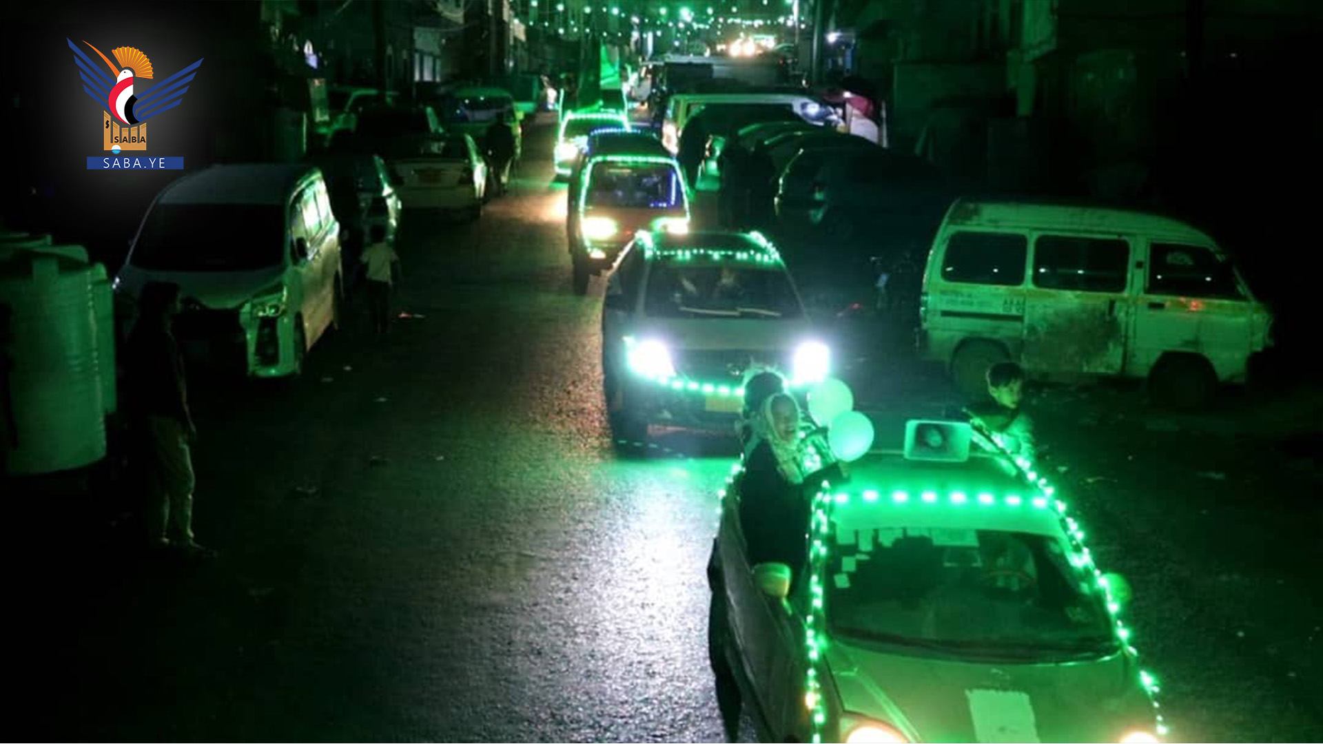 شهدت مديرية آزال في أمانة العاصمة، مسيرة ضوئية للسيارات المزينة بالأضواء والأعلام الخضراء ابتهاجاً واحتفاءً بذكرى المولد النبوي الشريف.