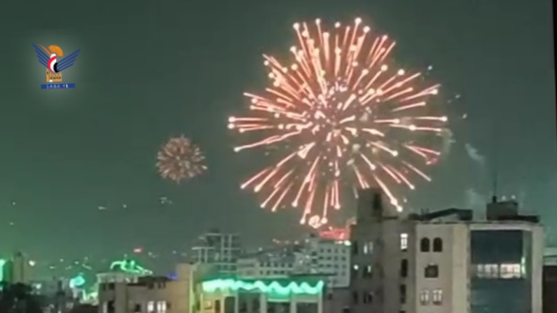 ويأتي إطلاق الألعاب النارية في إطار الاحتفال الكبير بحلول ذكرى المولد النبوي الشريف الذي سيحييه أبناء الشعب اليمني بشكل واسع ومتفرد بعد ظهر يوم غد الخميس في ميدان السبعين بالعاصمة صنعاء وساحات المحافظات.