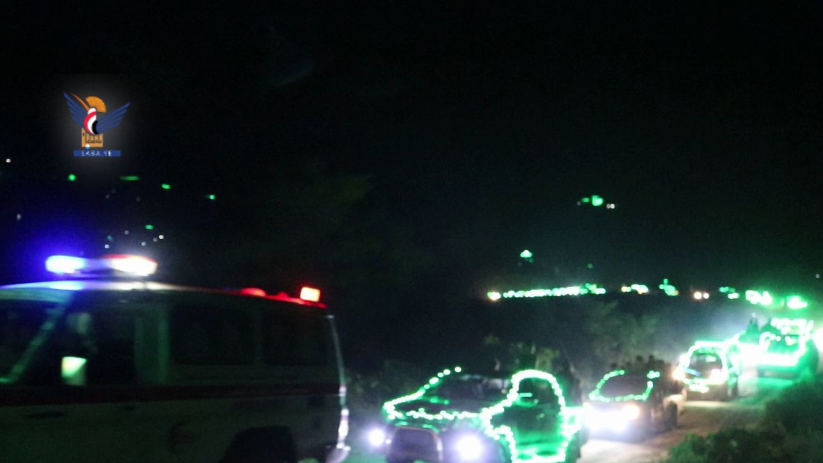 في غضون ذلك، شهدت مديرية السدة بمحافظة إب، مساء اليوم، مسيرة ضوئية للسيارات المزينة بالأضواء الخضراء، تعبيرًا عن الفرحة والابتهاج بذكرى مولد خير البرية، النبي محمد صلى الله عليه وآله وسلم.