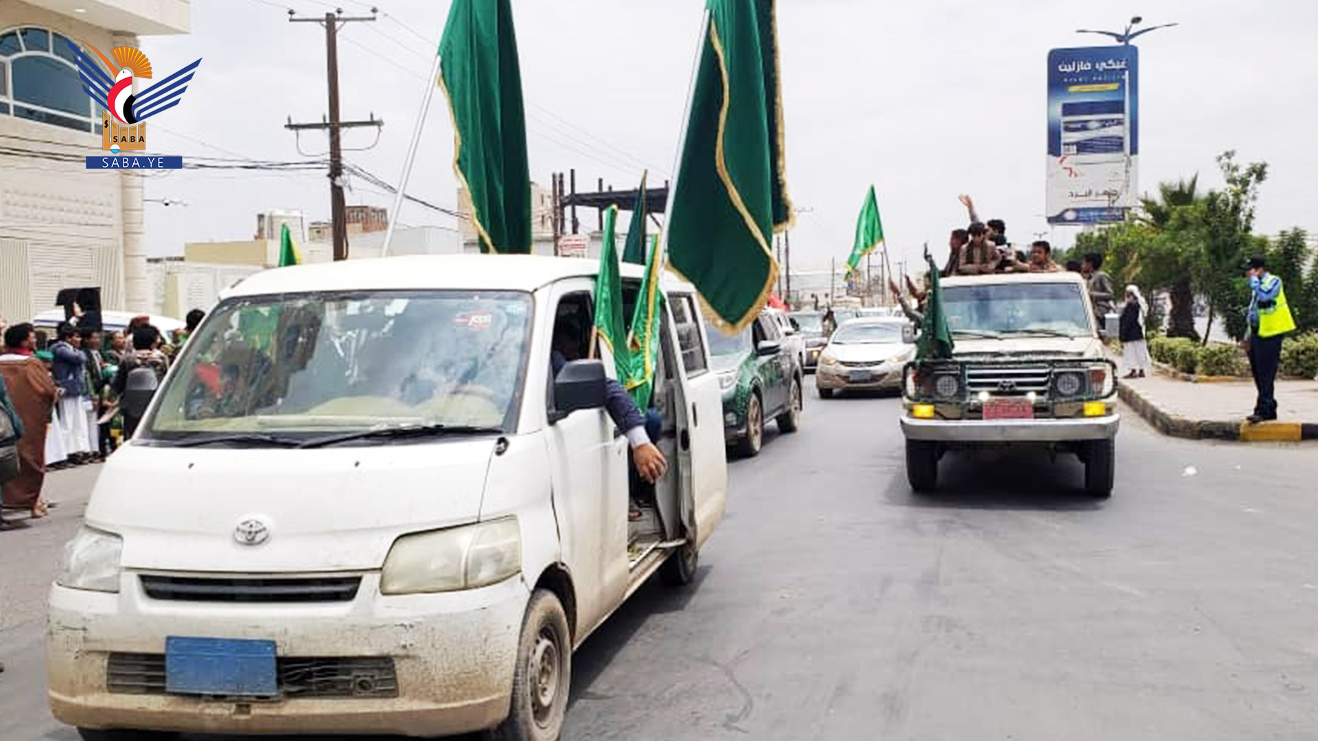 حيث اكتظت مختلف مداخل العاصمة صنعاء بالحشود المحمدية التي تحمل الرايات الخضراء والشعارات المعبرة عن الترحيب والابتهاج بمولد الرسول الأعظم صلوات الله عليه وآله وسلم.