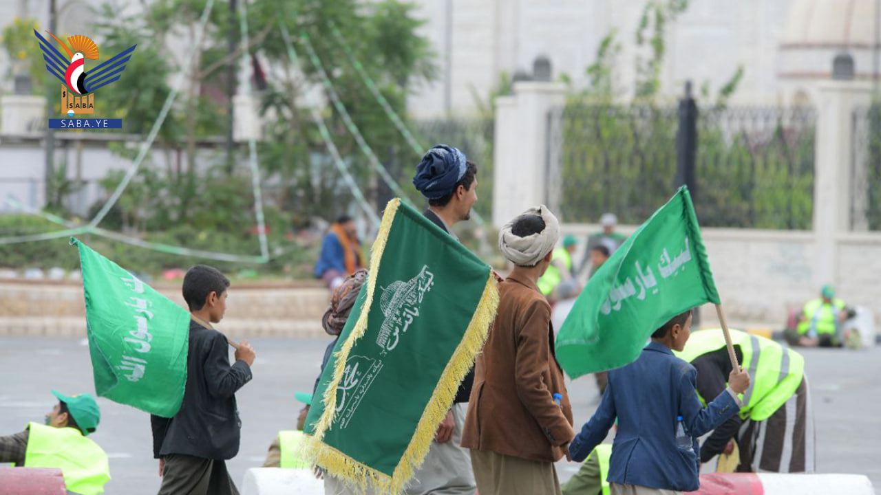 تواصل الحشود البشرية التدفق من كافة مديريات أمانة العاصمة نحو ميدان السبعين، للاحتفال الأكبر بذكرى المولد النبوي الشريف.