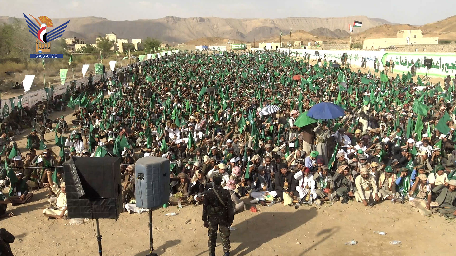 وباركت الحشود الجماهيرية عمليات القوات المسلحة اليمنية في عمق الكيان الصهيوني، مؤيدة كافة الخيارات التي يتخذها قائد الثورة نصرة لفلسطين، ومعلنة الجهوزية القتالية الكاملة لخوض معركة الفتح الموعود والجهاد المقدس.