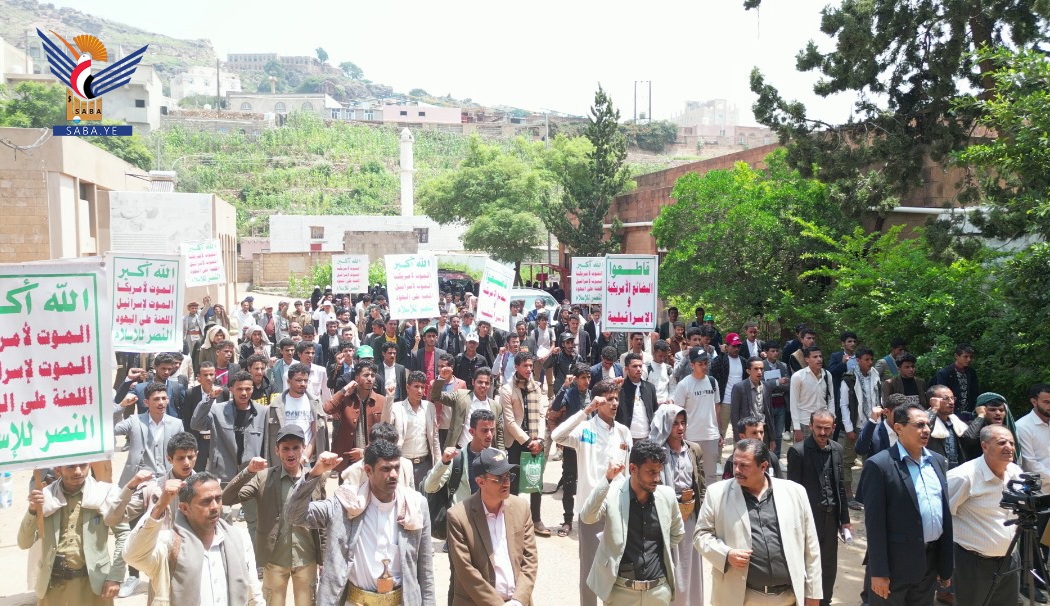 مسيرة طلابية حاشدة بجامعة المحويت تضامناً مع غزة وتنديداً بجرائم العدو الصهيوني