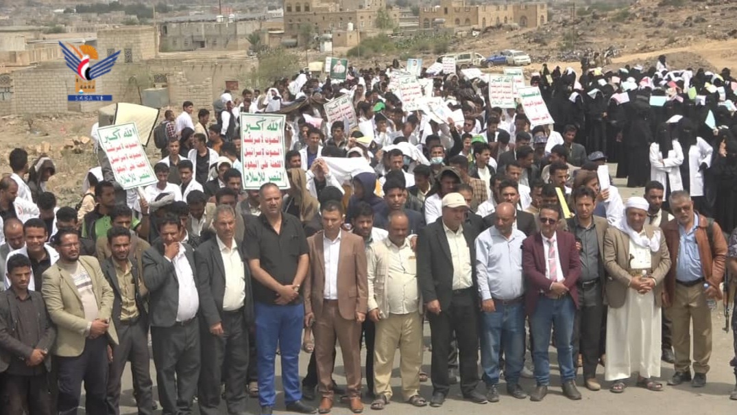 نظّمت جامعة البيضاء اليوم وقفة احتجاجية تنديدًا بجرائم القتل والتجويع التي يرتكبها الكيان الصهيوني بقطاع غزة، ودعمًا وإسنادًا للقضية الفلسطينية والمجاهدين في غزة وتأييدًا للقوات المسلحة اليمنية.