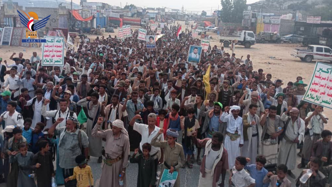 وأكد المشاركون في المسيرات، بمربعات مديريات المدينة وتهامة والشرفين وعاهم، الثبات والصمود في مواجهة قوى الاستكبار العالمي وجلاوزة العصر والجهوزية الكاملة لخوض المعركة المصيرية مع قوى الهيمنة والاستكبار "أمريكا وإسرائيل".