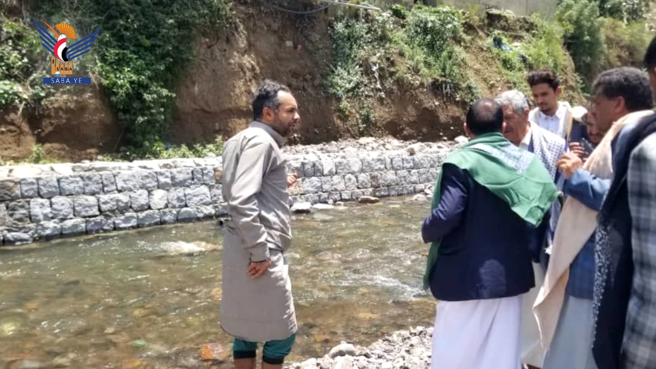 الاطلاع على أضرار السيول بمشروع الجدار الساند لحي وطن في مديرية السدة بإب