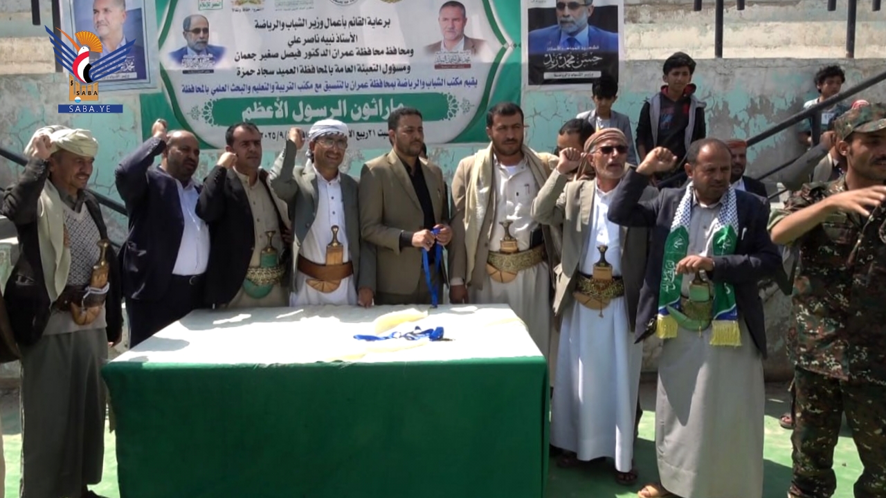 أُقيم بمحافظة عمران اليوم، سباق "الرسول الأعظم"، نظمه مكتب الشباب والرياضة بالمحافظة، بالتنسيق مع قطاع التربية، في إطار الفعاليات الشبابية والرياضية التي ترعاها وزارة الشباب والرياضة، بمناسبة المولد النبوي الشريف.