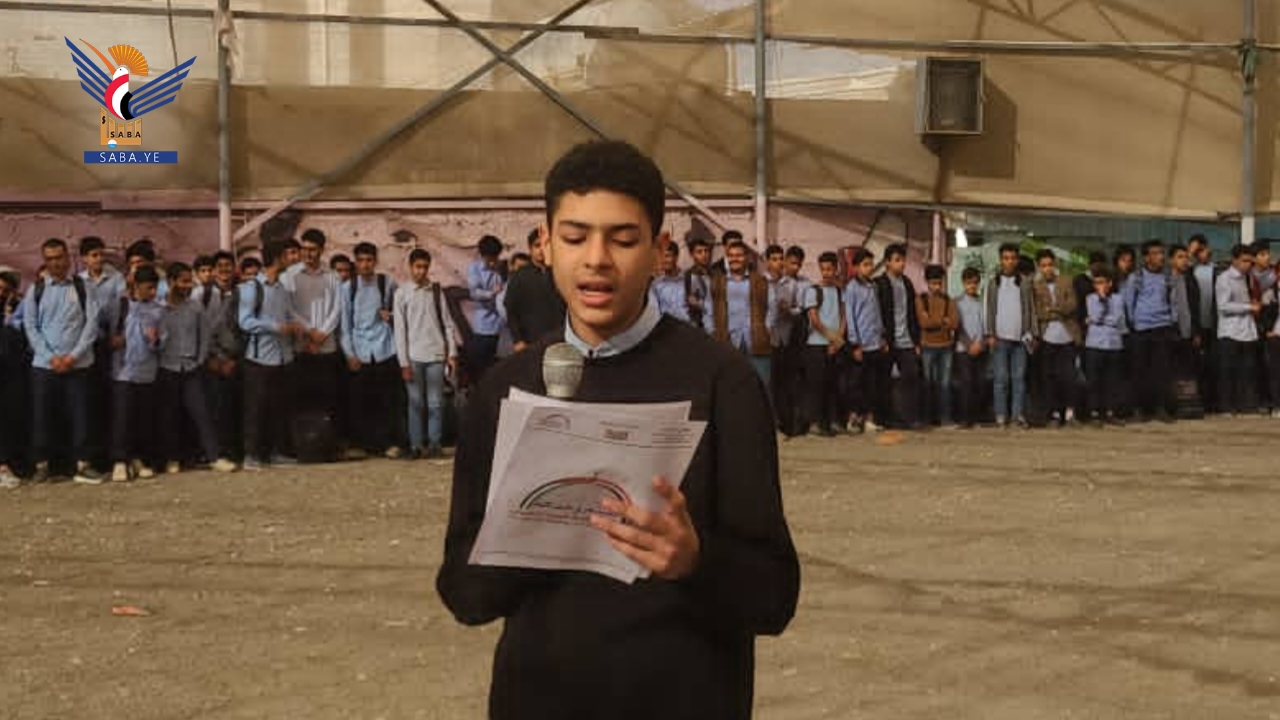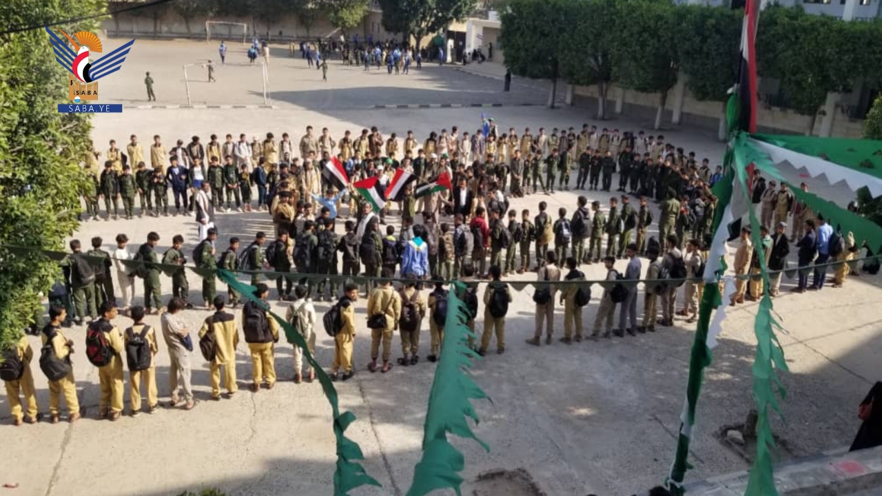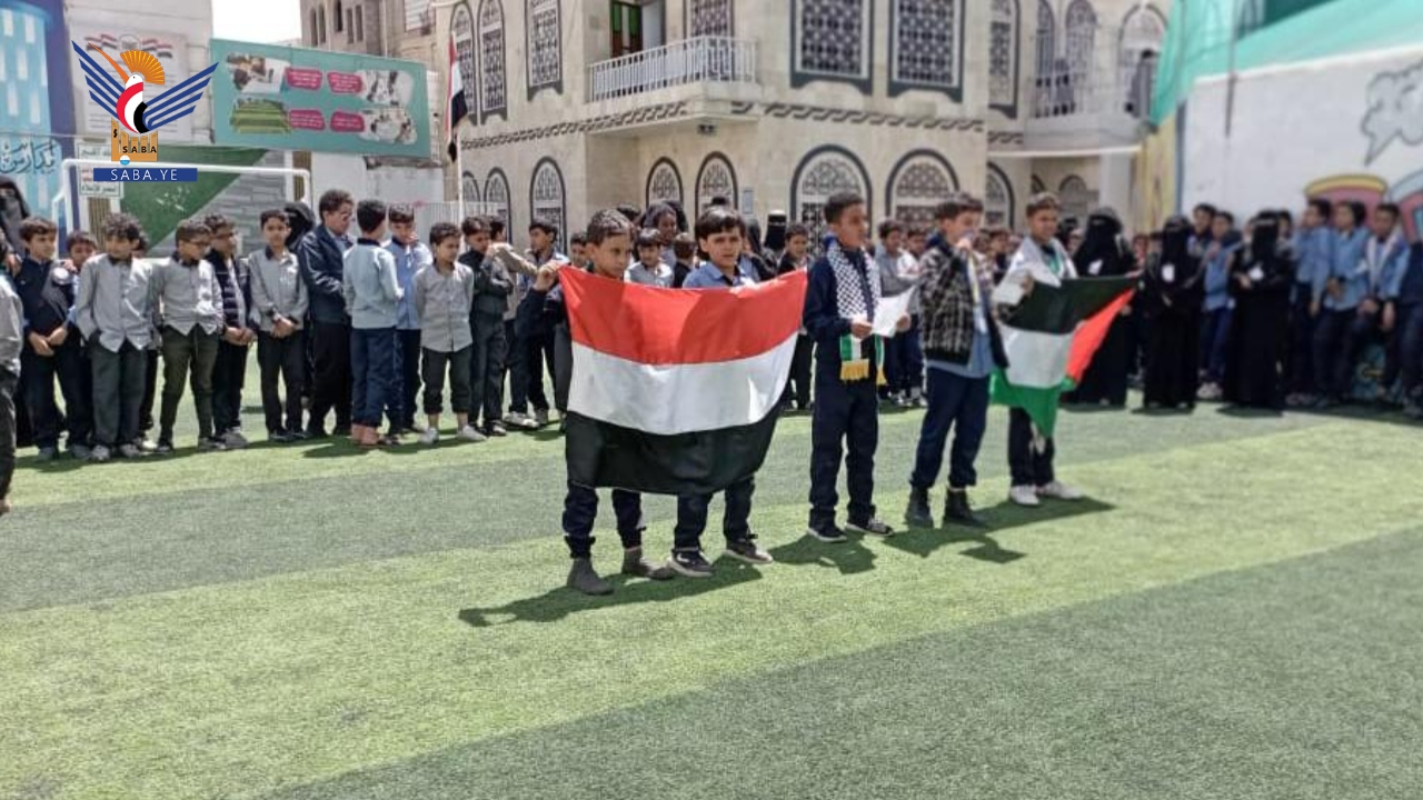 شهدت المدارس الحكومية والأهلية بمديريات أمانة العاصمة اليوم، وقفات طلابية تنديداً بجرائم العدو الصهيوني، وتأكيداً على مواصلة نصرة الشعب الفلسطيني في غزة، تحت شعار "وفاء للشهداء.. لن نتراجع عن إسناد غزة مهما كانت التضحيات".
