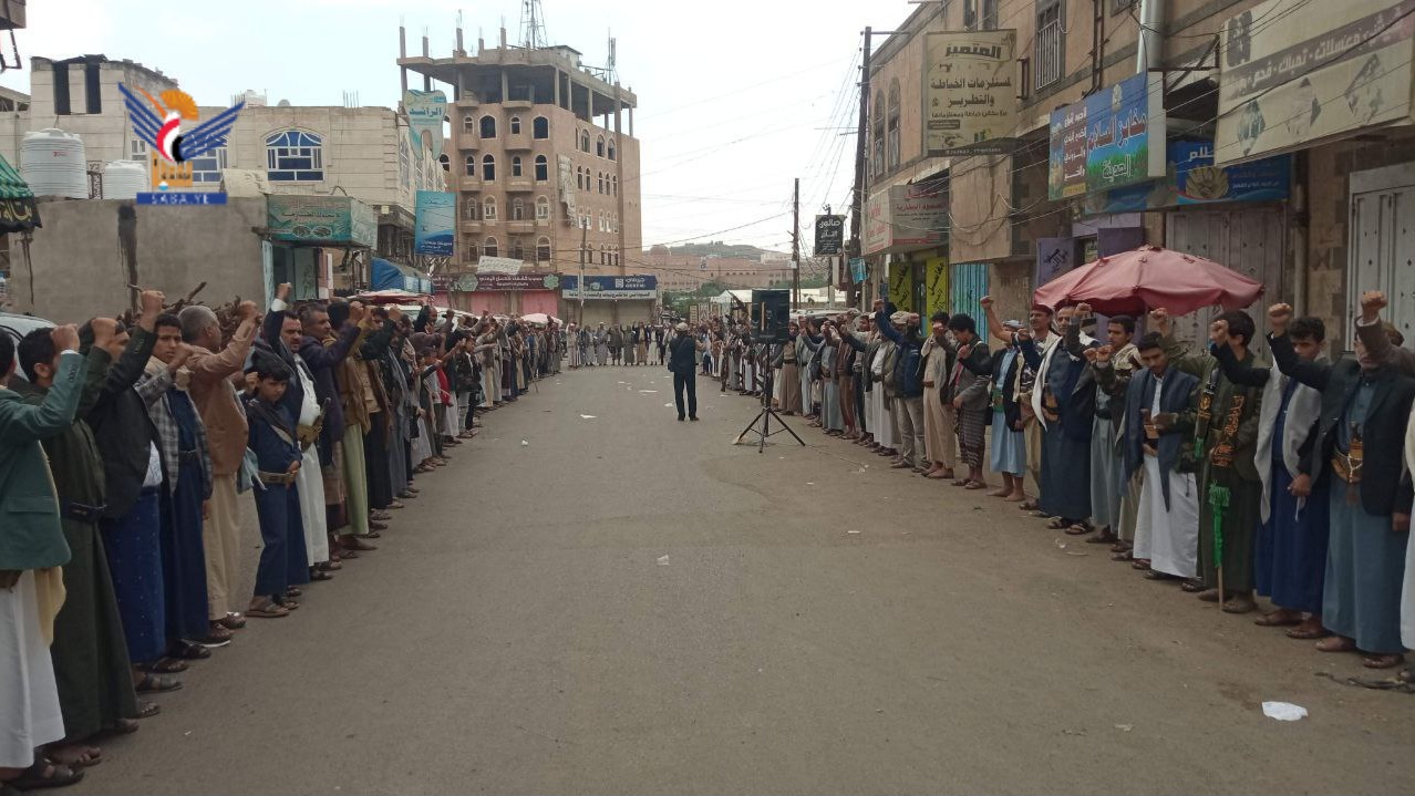 وجدد أبناء مديريات معين والسبعين والصافية، تفويضهم المطلق لقائد الثورة، واستعدادهم لكل الخيارات، والتأكيد على استمرار الثبات والوقوف مع أبناء غزة ونصرة قضايا الأمة مهما كانت التضحيات، مؤكدين أن عاقبة التفريط الذل والهوان في الدنيا والآخرة.