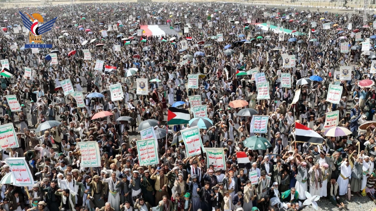 وفي المسيرات التي خرجت بساحتي المولد النبوي بمركز المحافظة، والشهيد القائد في خولان عامر، وساحات ذويب بمديرية حيدان، وشعارة والحجلة وبني صياح وبني القم والشوارق بمديرية رازح، والخميس وآل مقنع ونيد البارق بمديرية منبه، والسهلين والبرقة والعقلين بمديرية آل سالم، وكتاف وأملح والعقيق بمديرية كتاف، والجرشة والرحمانين وبقامة بمديرية غمر، وبني سعد والرقة والقهرة ووالبه والعين بمديرية الظاهر، والجمعة وعرو بمديرية بني بحر، ومديرية شدا ، ويسنم وساحة قهر بني الحارث بمديرية باقم، وقطابر وآل ثابت وحنبه بمديرية قطابر، وربوع الحدود وبني عباد وولد عمر وبني سويد ومدينة جاوي بمديرية مجز، ومذاب بمديرية الصفراء، والجفرة والعضلة بمديرية الحشوة، أكد المشاركون أن الشعب اليمني لن يقبل بعار خذلان أبناء غزة وفلسطين مهما كانت جرائم العدوان الأمريكي الصهيوني.