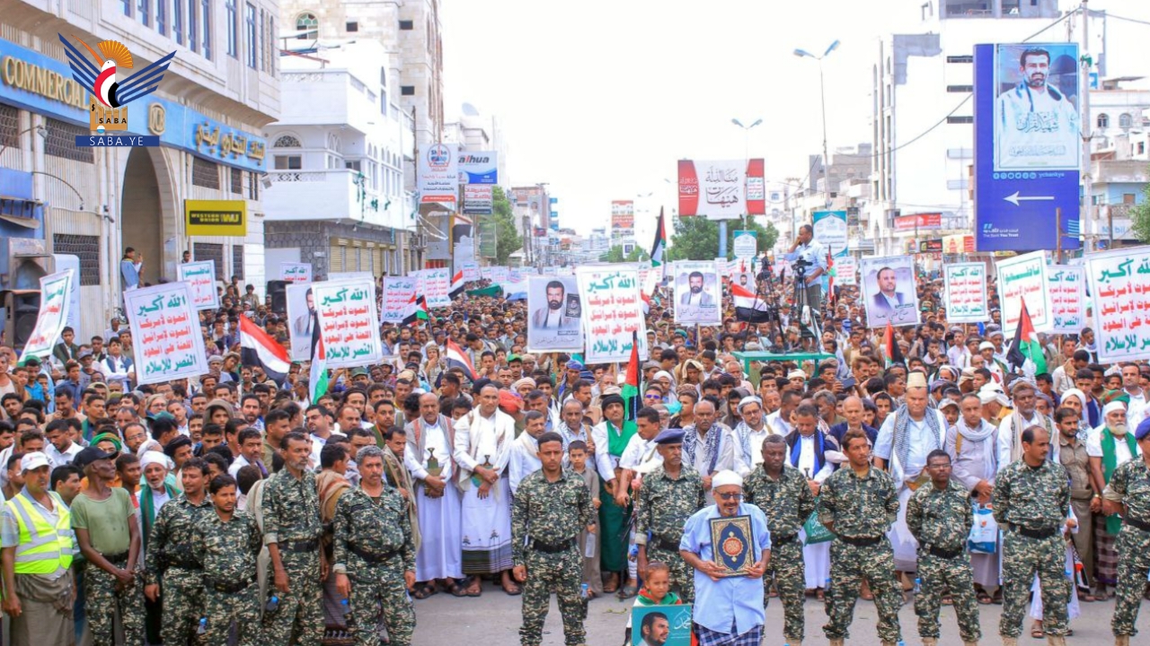 وهتف المشاركون في المسيرات التي تقدمها في مدينة الحديدة المحافظ عبدالله عطيفي، ووكيل أول المحافظة أحمد البشري، ووكيلا المحافظة محمد حليصي، وعلي كباري بشعارات الصمود والثبات لمواجهة قوى الهيمنة والاستكبار العالمي "أمريكا وإسرائيل".