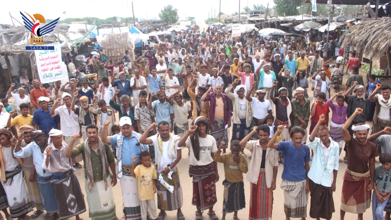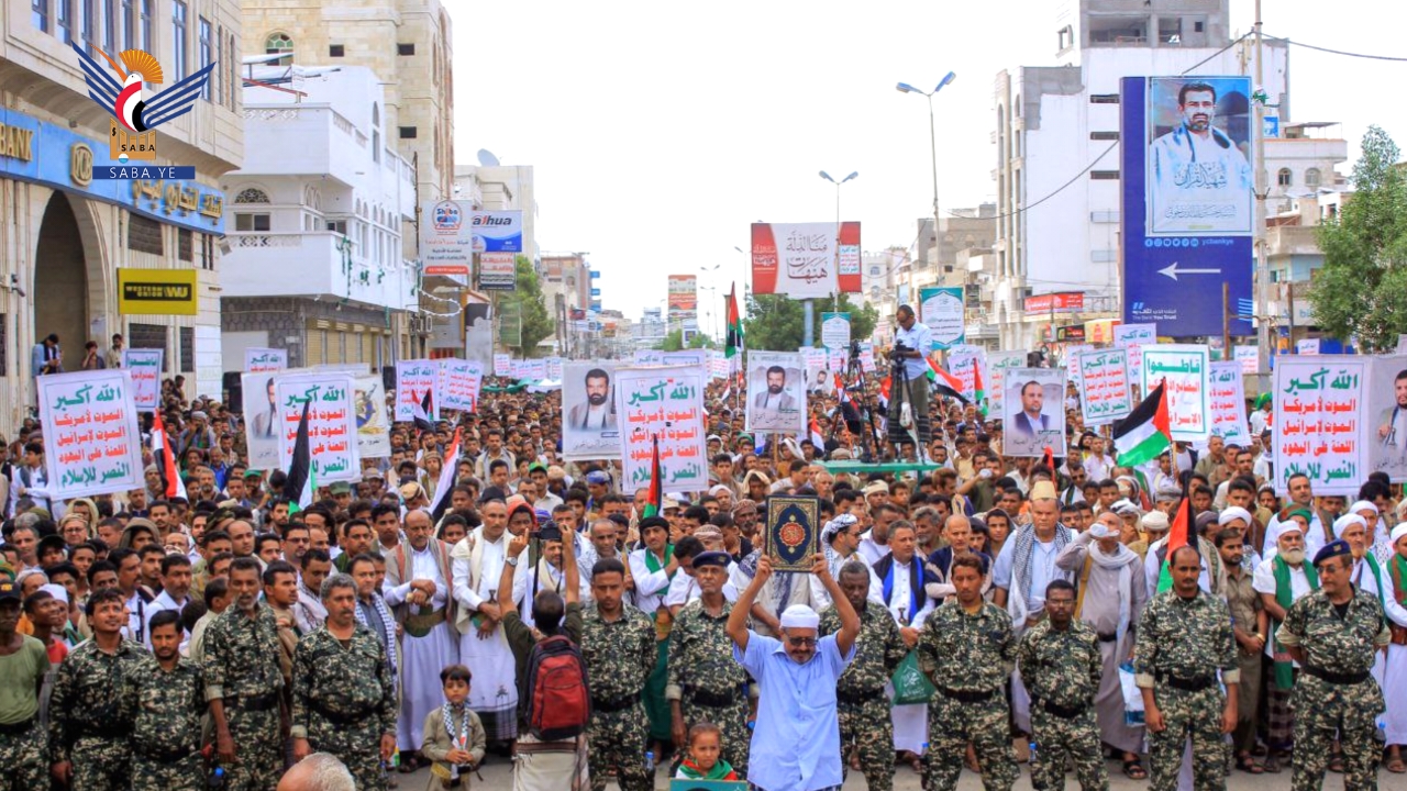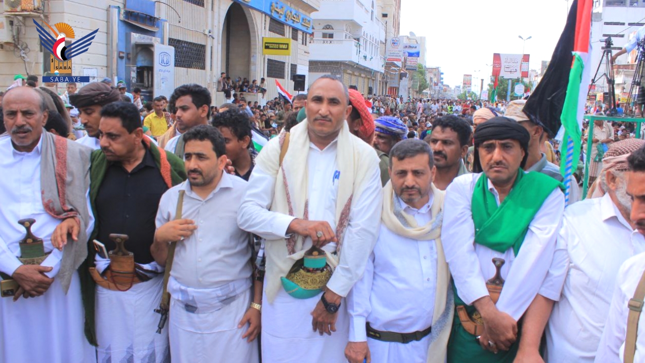 وأهاب أبناء الحديدة بالشعوب العربية والإسلامية بأن يكون لهم موقف عملي شجاع ومشرف، وتحكيم ضمائرهم والضغط على حكامهم، خاصة الدول التي تعمل على دعم وإسناد العدو الصهيوني الغاصب الذي يرتكب أكبر مجازر العصر في قطاع غزة.