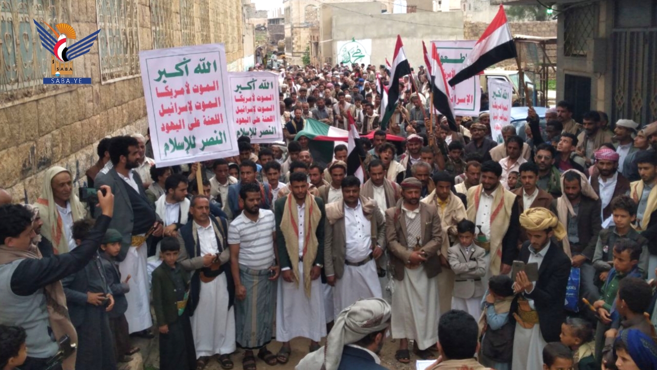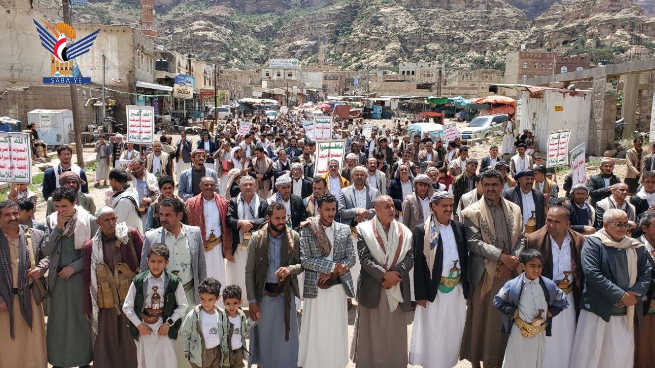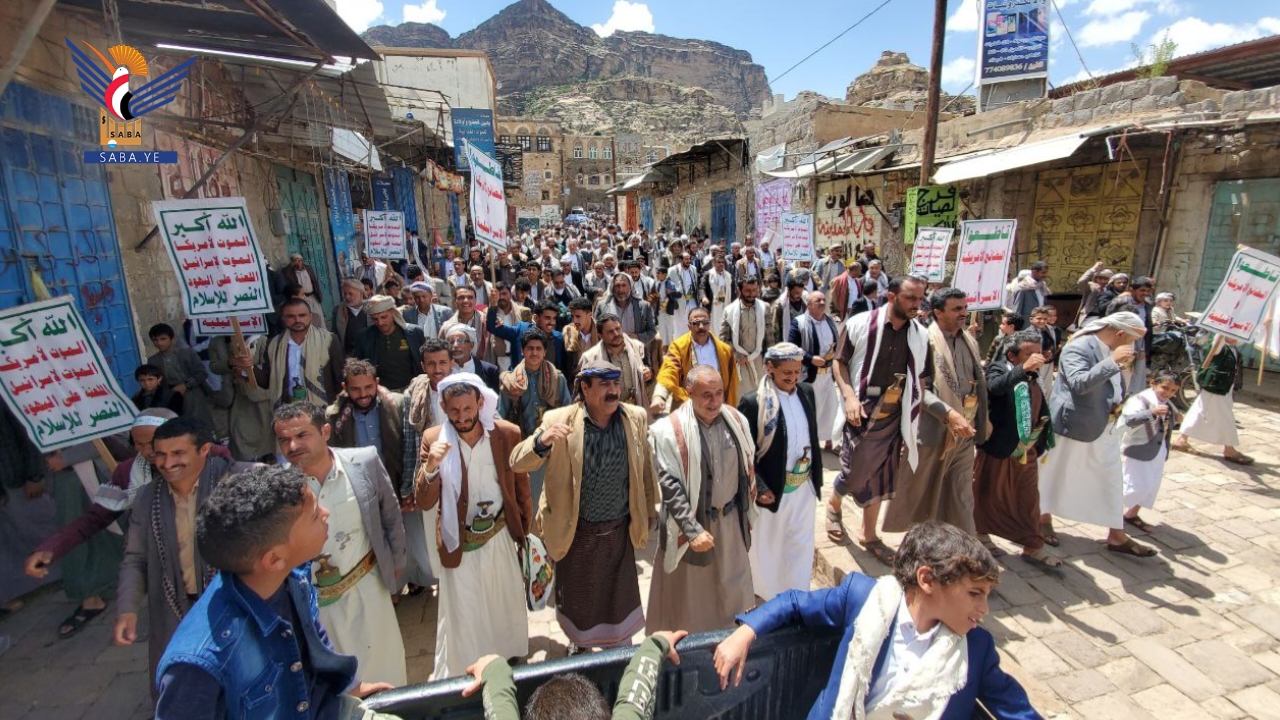 ورددت الحشود المشاركة في المسيرات والوقفات التي شهدتها مديريات شبام كوكبان، الطويلة، الرجم، المدينة، الخبت، بني سعد، حفاش، وملحان، بمشاركة وكلاء المحافظة والقيادات المحلية والتنفيذية والأمنية، الهتافات المنددة بالمجازر الصهيونية وجرائم الإبادة الجماعية التي يتعرض لها أبناء غزة، في ظل تواطؤ دولي وصمت مخزٍ من المجتمع الدولي.
