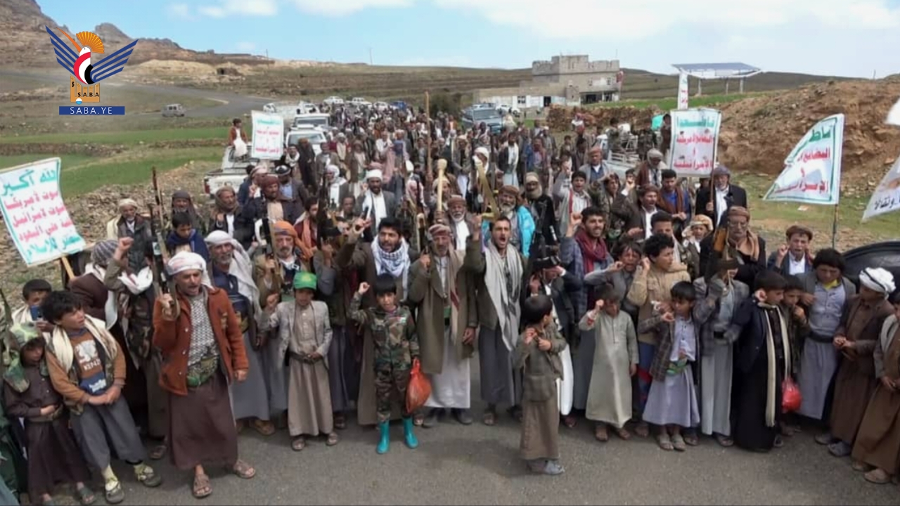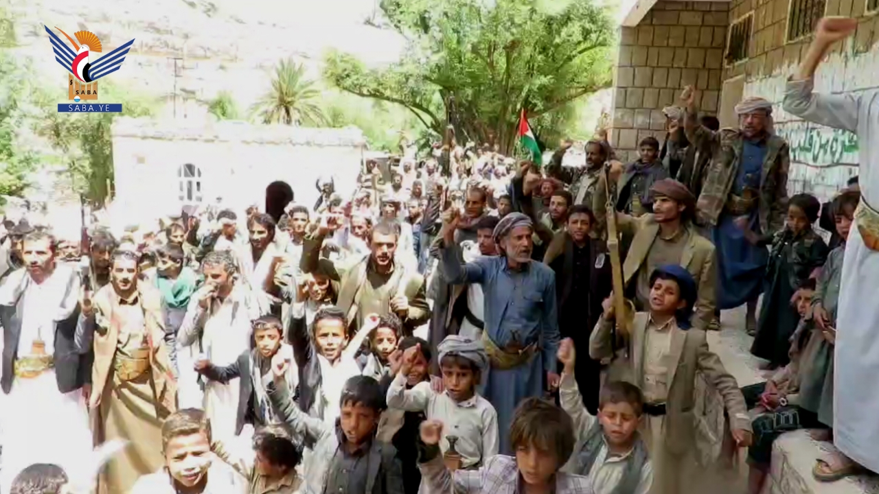 وشهدت ساحتا قانية والعمود بمديرية ماهلية وساحتا العادي والطارف بجبل مراد وساحات رحبة والعبدية ومعشراء مسيرات ووقفات حاشدة تأكيدا على الجهوزية لمواجهة أي تحركات للعدو الصهيوني الأمريكي وأدواتهم في المنطقة، ومواصلة إسناد غزة بالمال والنفس.
